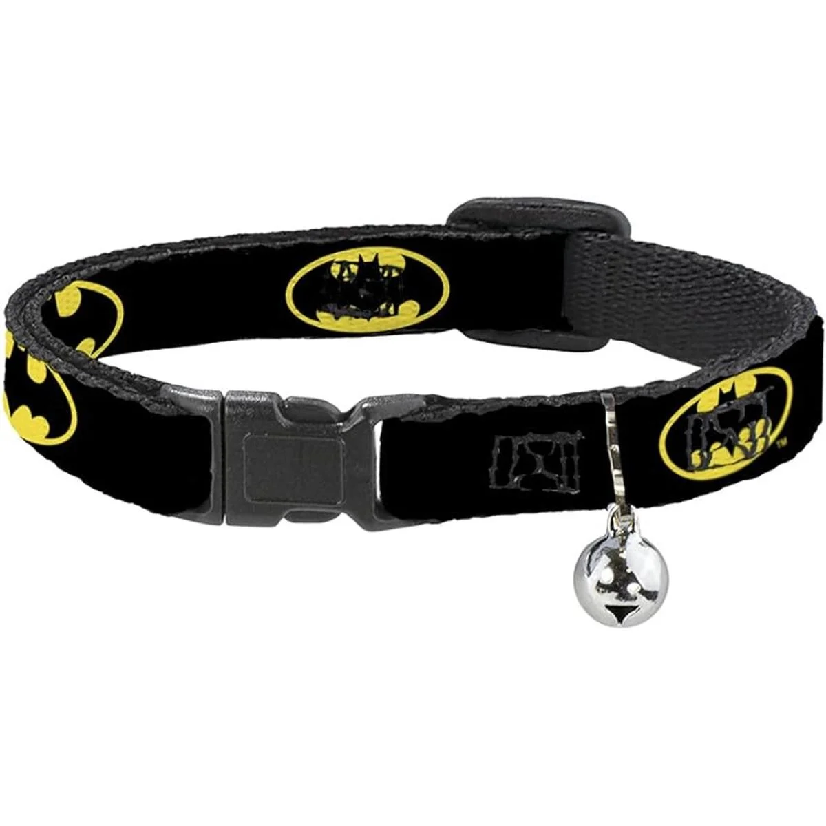 Collar de gato con hebilla Breakaway Batman Shield negro amarillo 8 a 12 pulgadas 0.5 pulgadas de ancho, multicolor BACWBM001NM