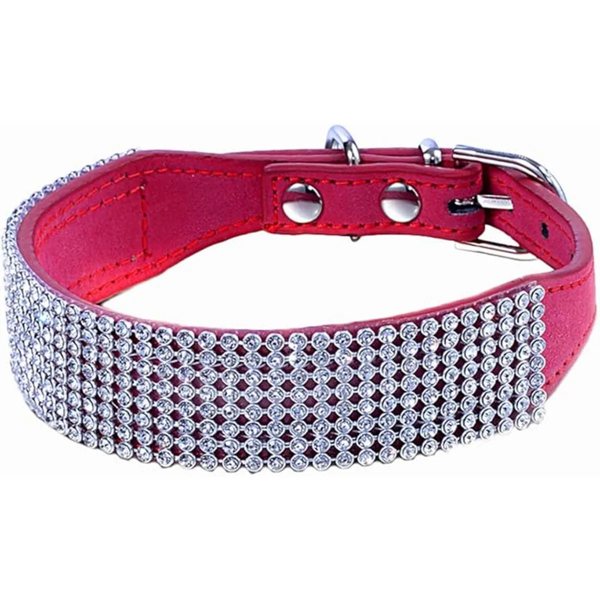 Collar de perro con diamantes de imitación de diamantes de imitación de piel de ante con diamantes de imitación de diamantes de imitación pequeño collar de perro para mascota rojo, S