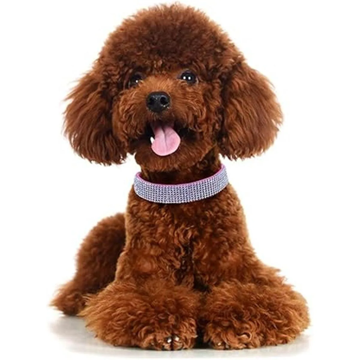 Collar de perro con diamantes de imitación de cristal, hebilla de diamantes brillantes, 5 ojales ajustables