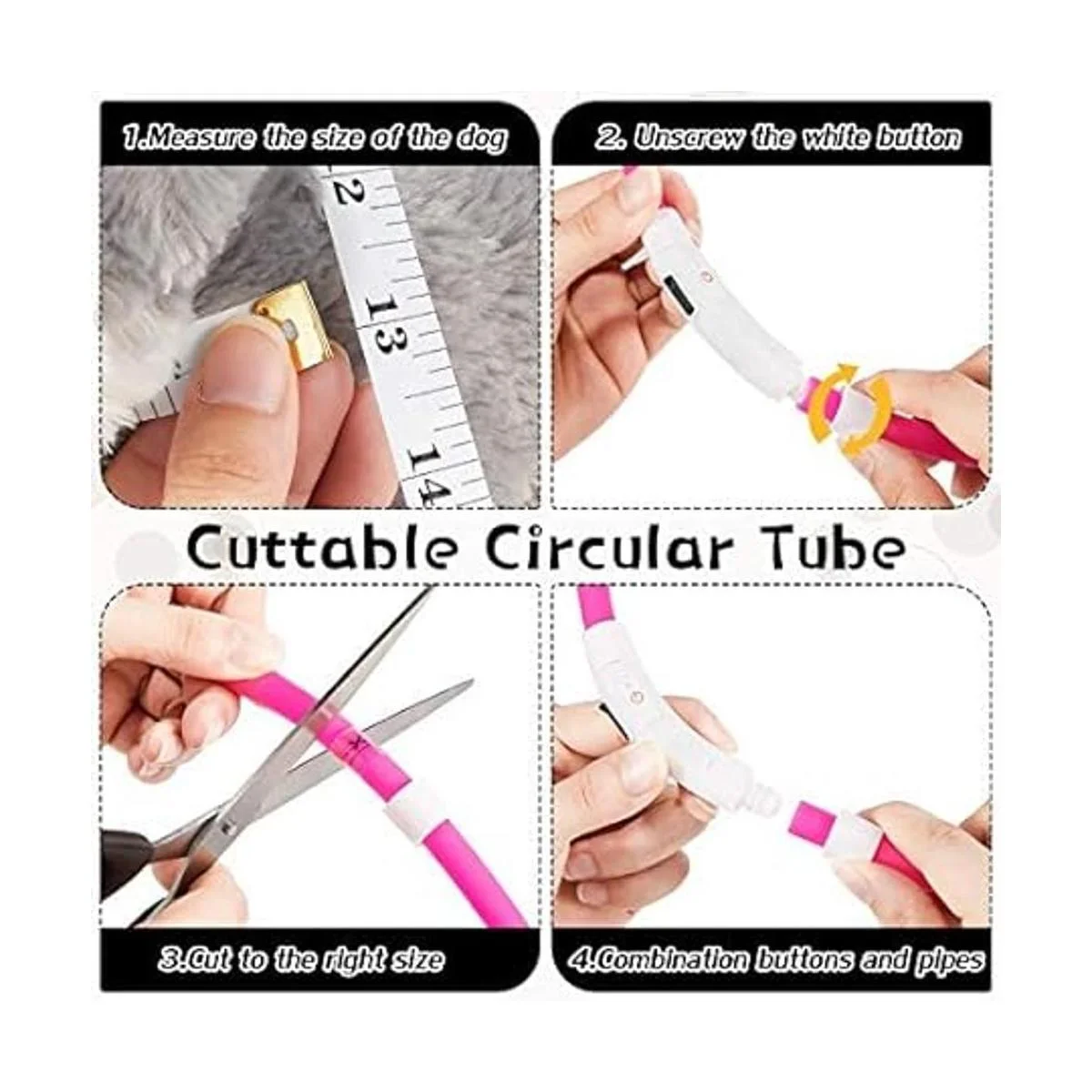 Tamaño ajustable: la longitud del collar de perro brillante es de 27.6 in, y es muy fácil de cortar para adaptarse al tamaño según el cuello del perro; un par de cortadores de alambre o una hoja corta fácilmente el tubo de plástico a medida