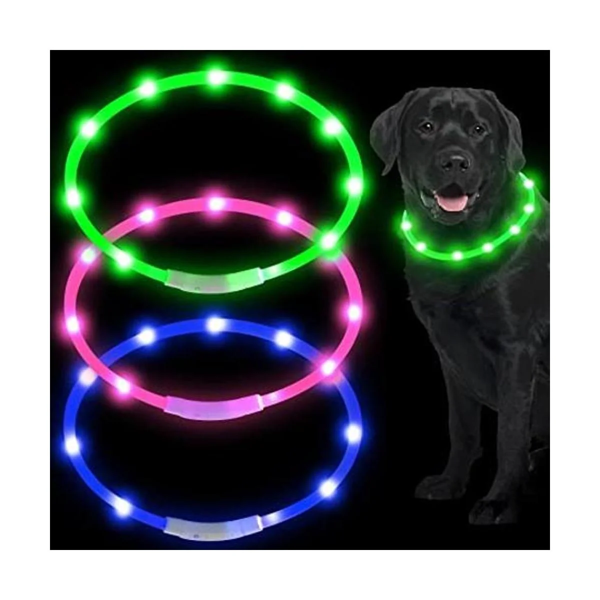 Collar de perro con luz LED, 3 unidades, recargable por USB, resistente al agua, collar de perro cortable, brillante, collar de seguridad para mascotas, collar para perros pequeños, medianos, grandes, rosa, verde, azul