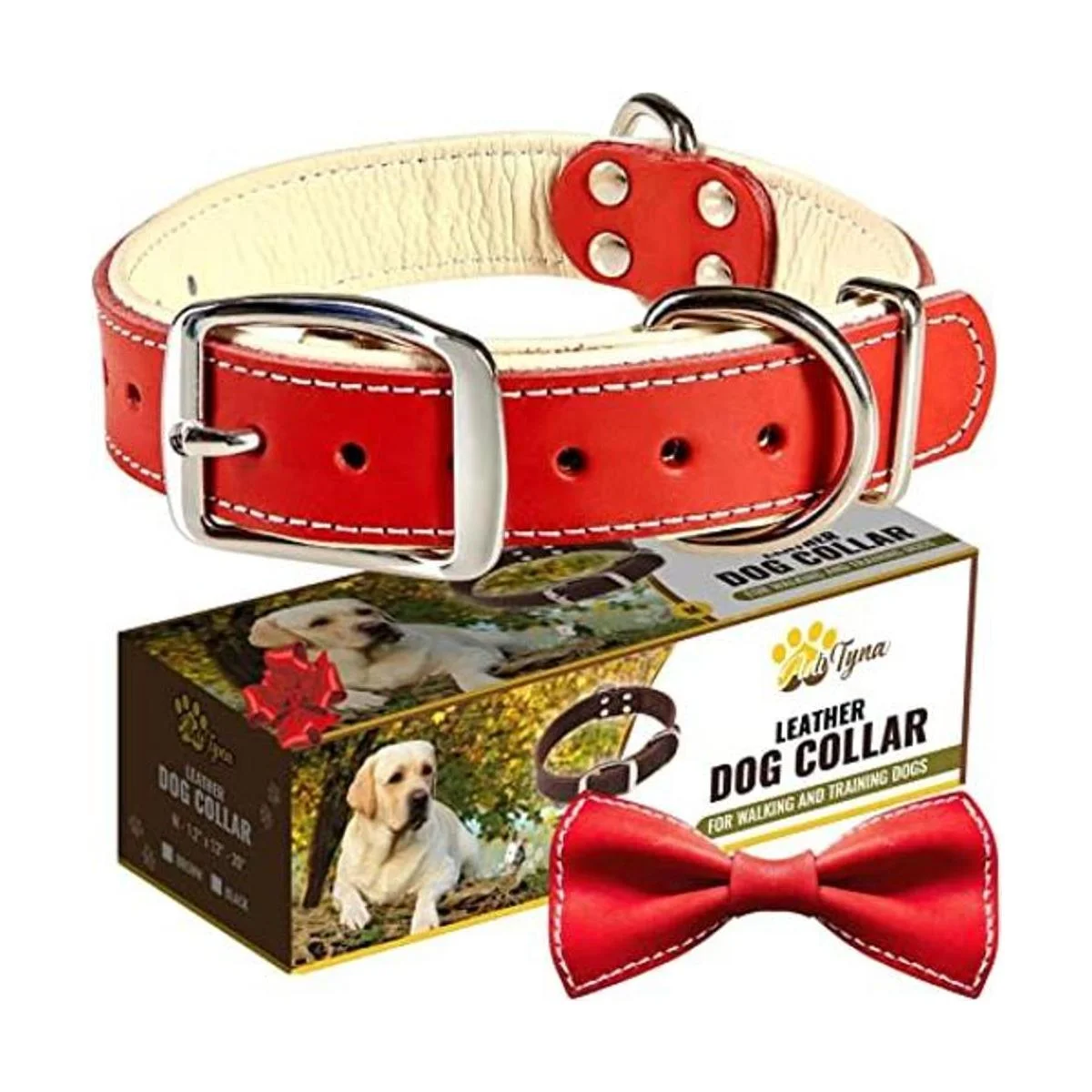 Collar para perro de piel roja de alta calidad; cómodo y con cierre seguro con doble hebilla, dos anillos en D y cuero de alta calidad, el collar de cuero acolchado Adityna es una gran opción para todos los perros, incluidos los con piel sensible; obtén solo productos premium y elegantes para tu querido perro