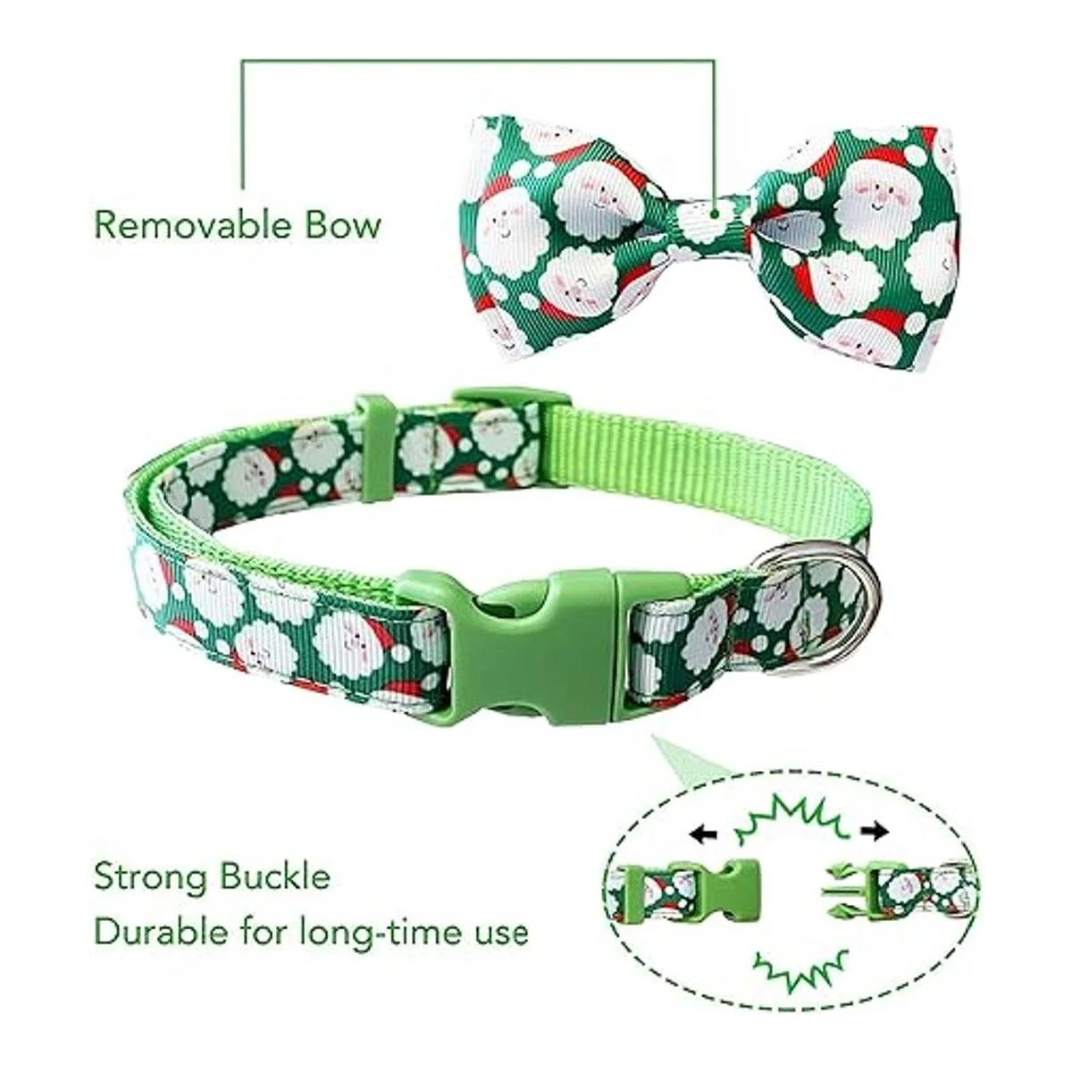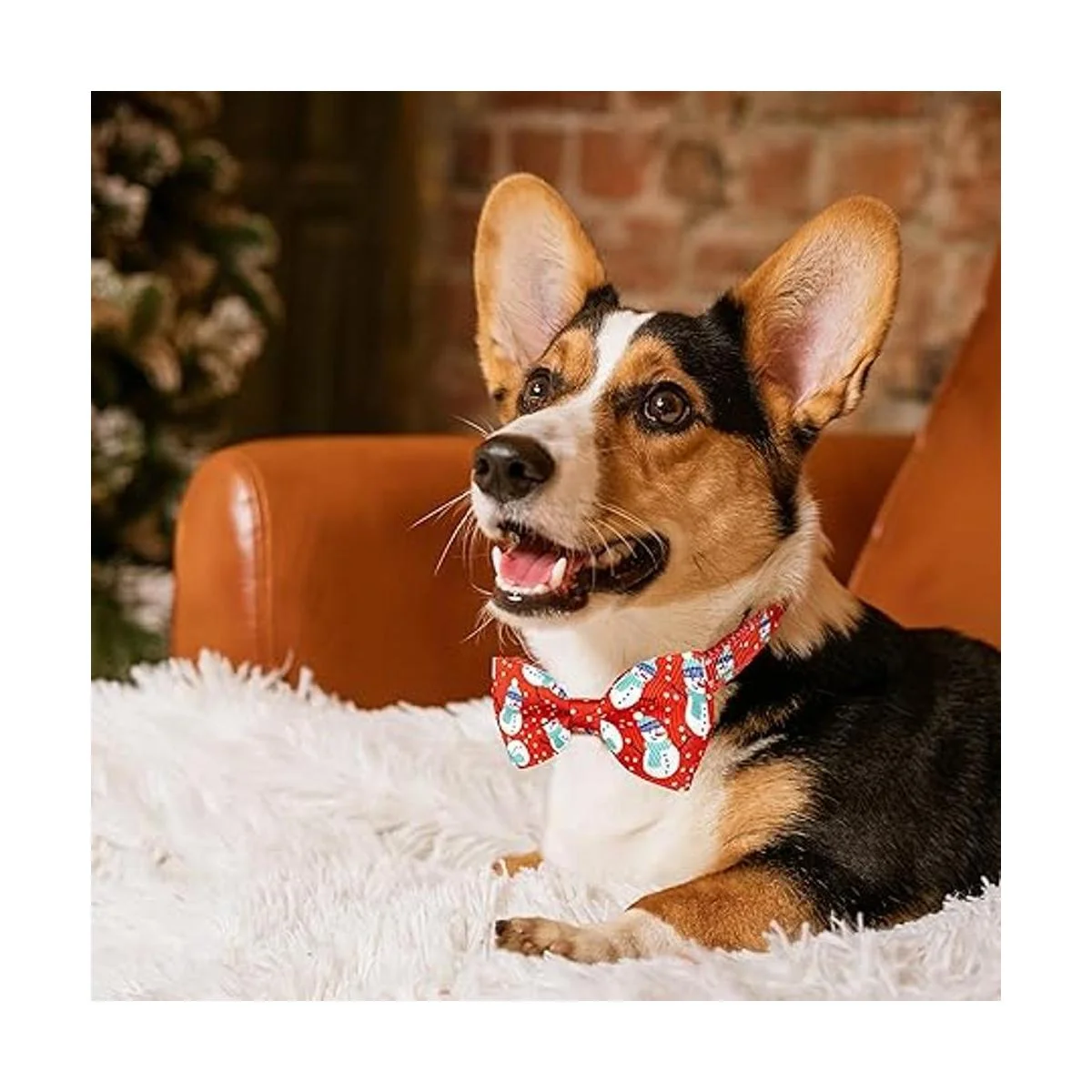 Diseño único: mini pajarita de Papá Noel/muñeco de nieve para collar de mascota. Fabricado con correas de poliéster duraderas de alta densidad, suave, duradero y cómodo para la mayoría de perros pequeños
