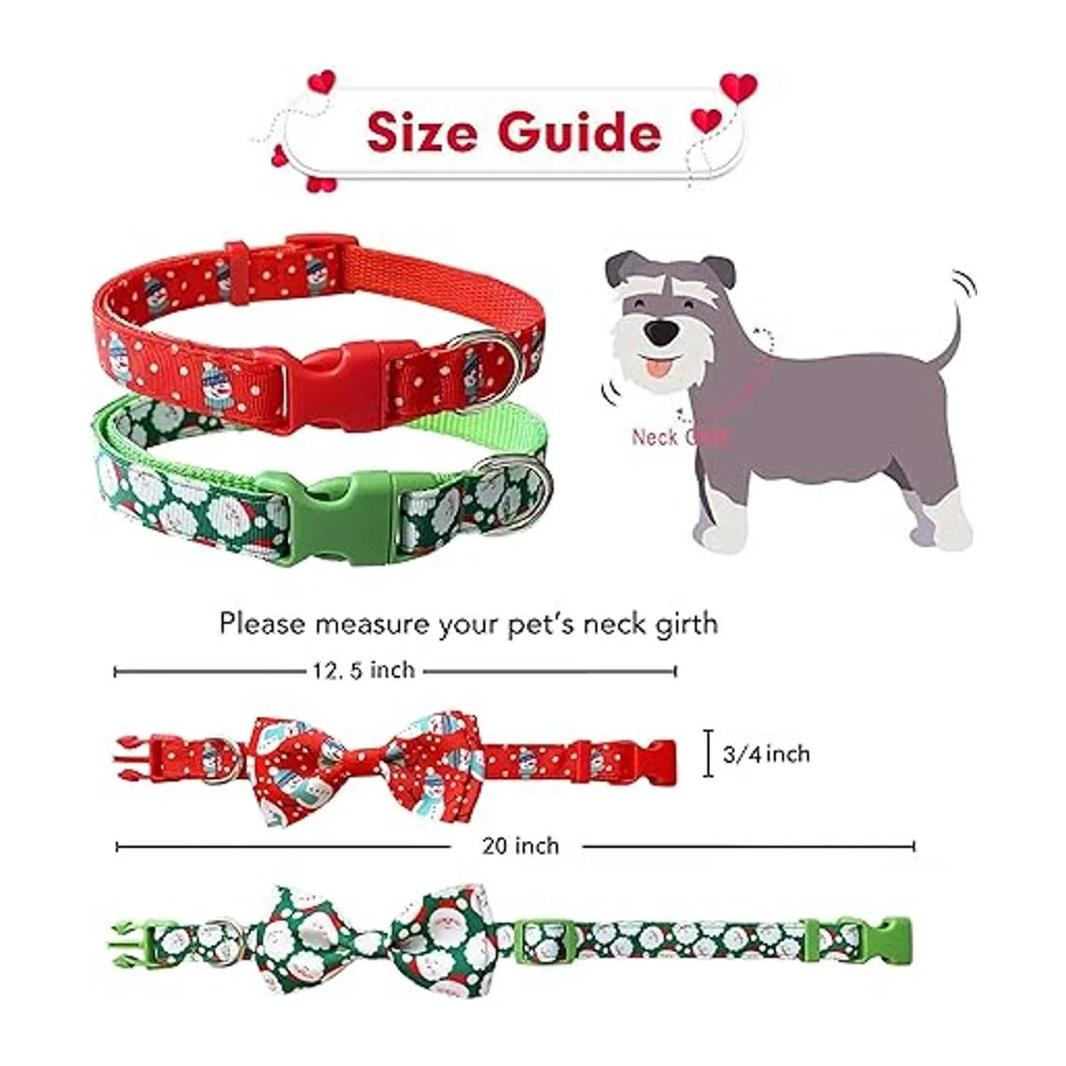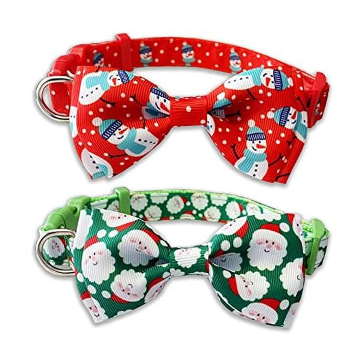 Collar de perro de Navidad con corbatín, paquete de 2 collares de Papá Noel y muñeco de nieve para perros pequeños, medianos y grandes, mascotas cuello mediano 12.520 pulgadas x 34 pulgadas de ancho