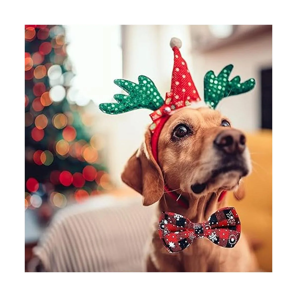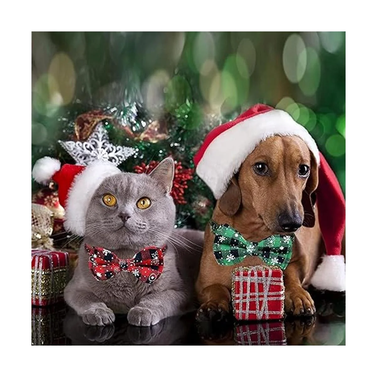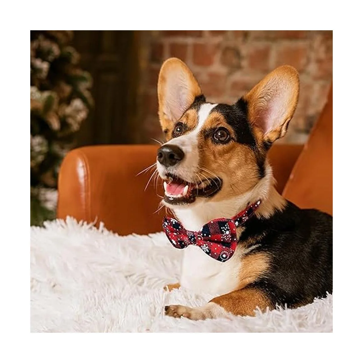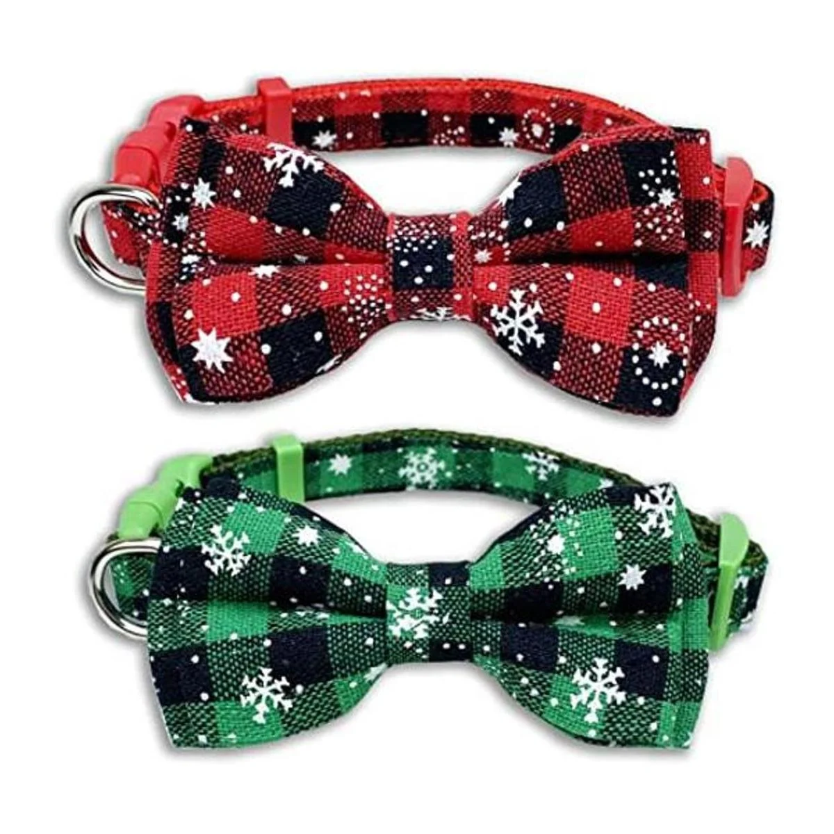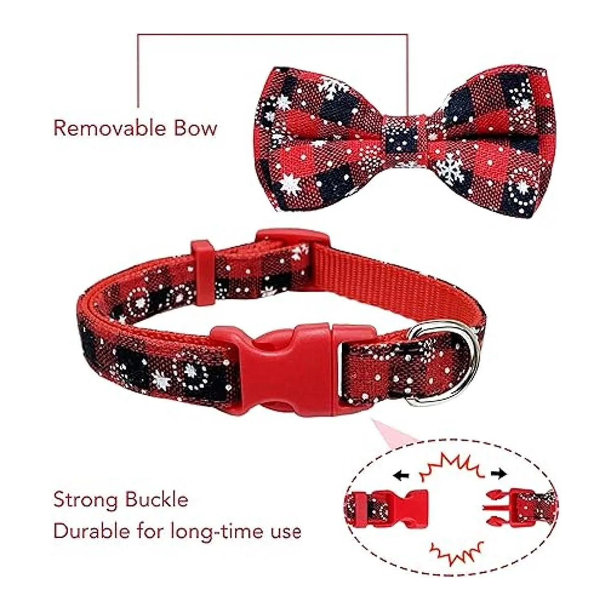 Diseño único: pajarita con diseño de copo de nieve rojo y copo de nieve verde búfalo, para collar de mascota. Fabricado con poliéster duradero de alta densidad, suave, duradero y cómodo para la mayoría de perros pequeños.