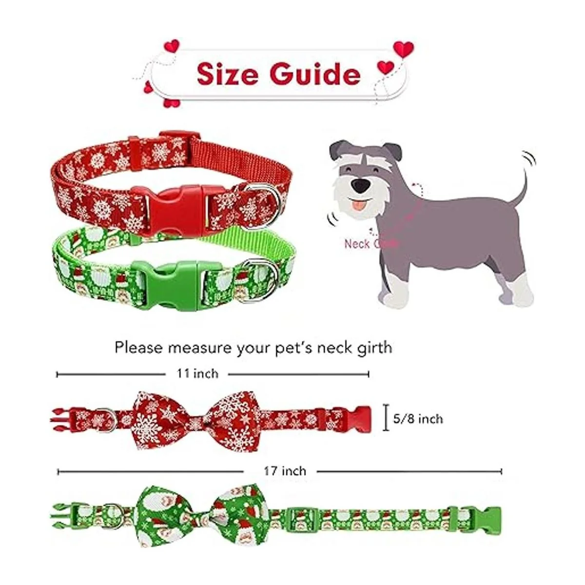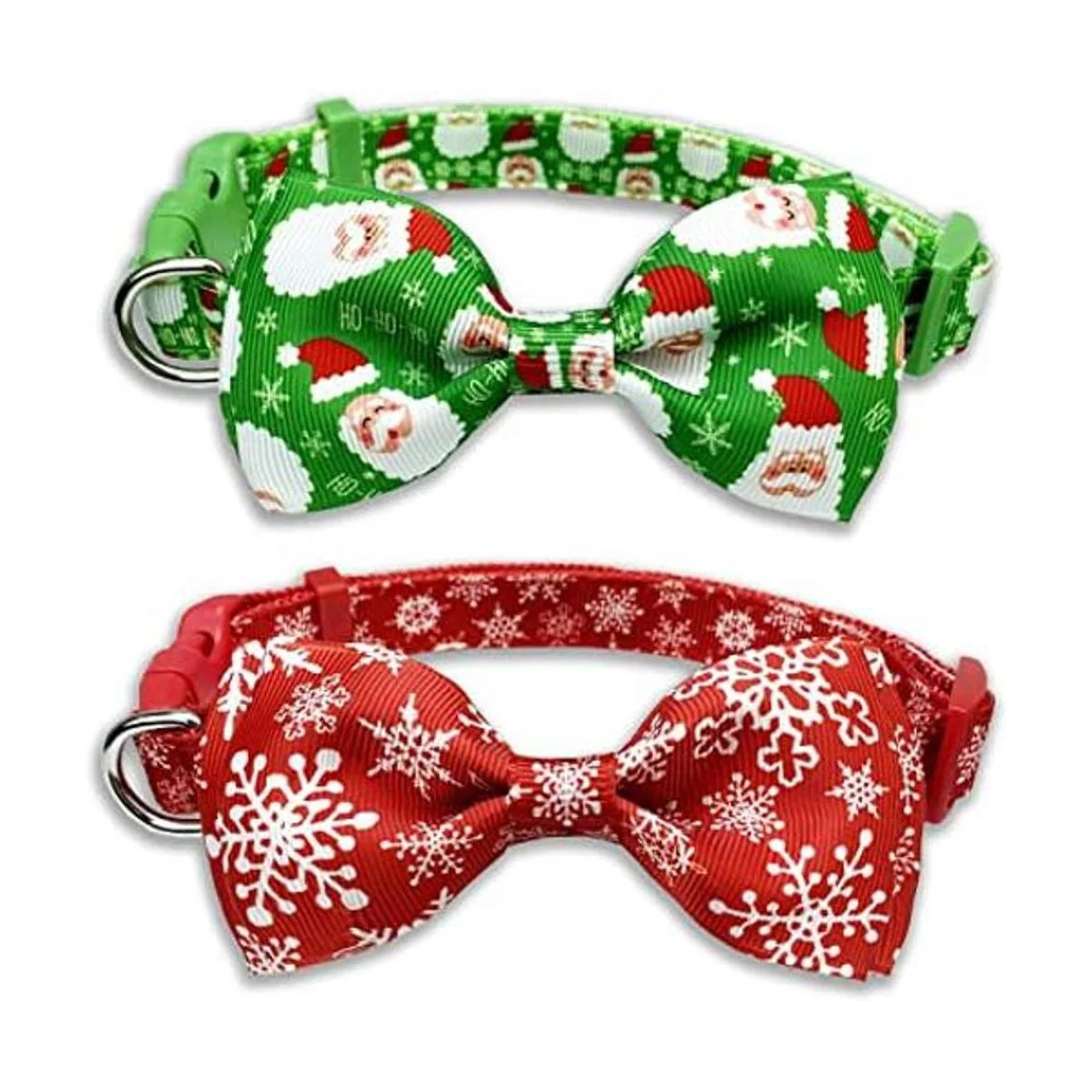 Collar de perro de Navidad con pajarita, paquete de 2 unidades de Papá Noel y collar de nieve de Navidad para perros pequeños, medianos y grandes, cachorros pequeño