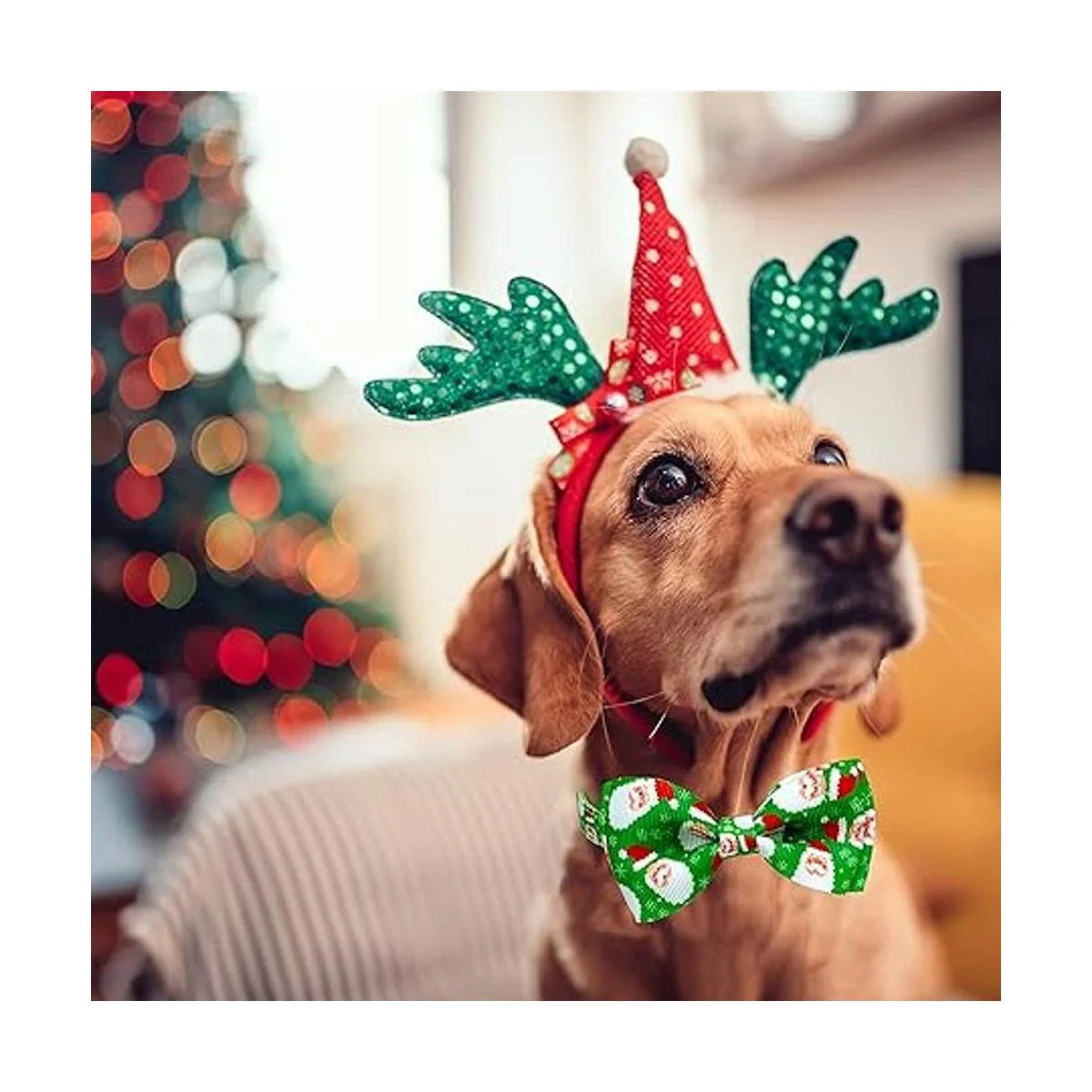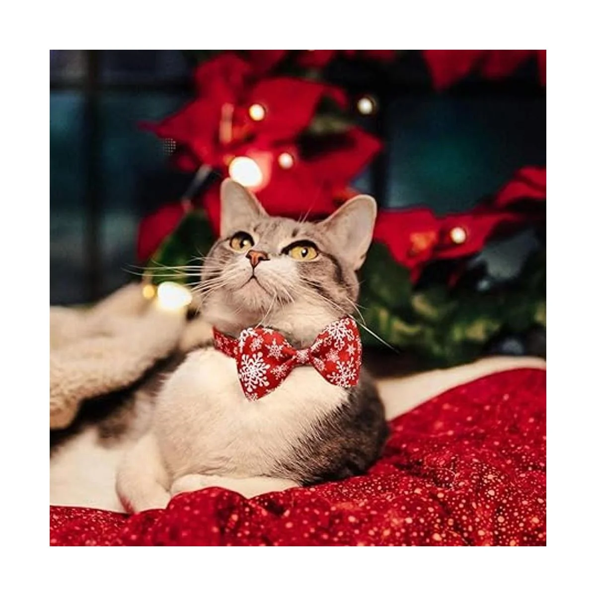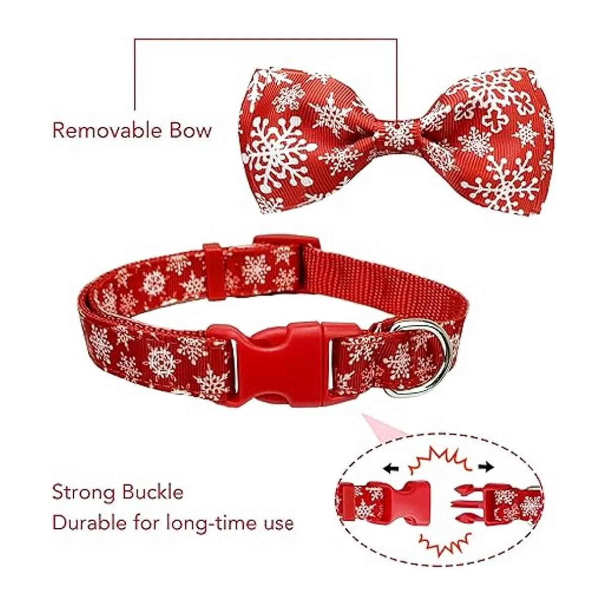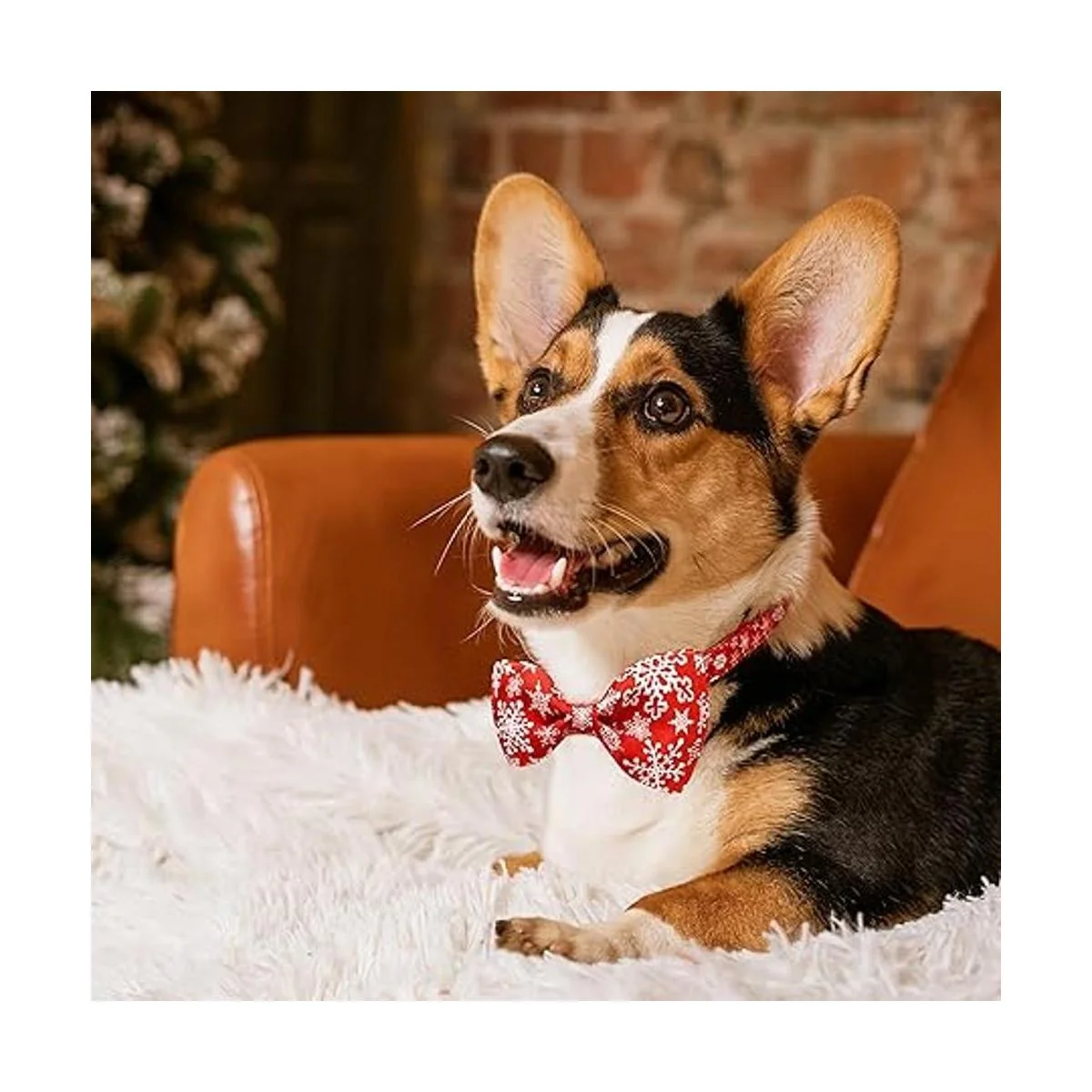 Diseño único: Papá Noel, copo de nieve, pajarita para collar de mascota. Fabricado con poliéster duradero de alta densidad, suave, duradero y cómodo para la mayoría de perros pequeños.