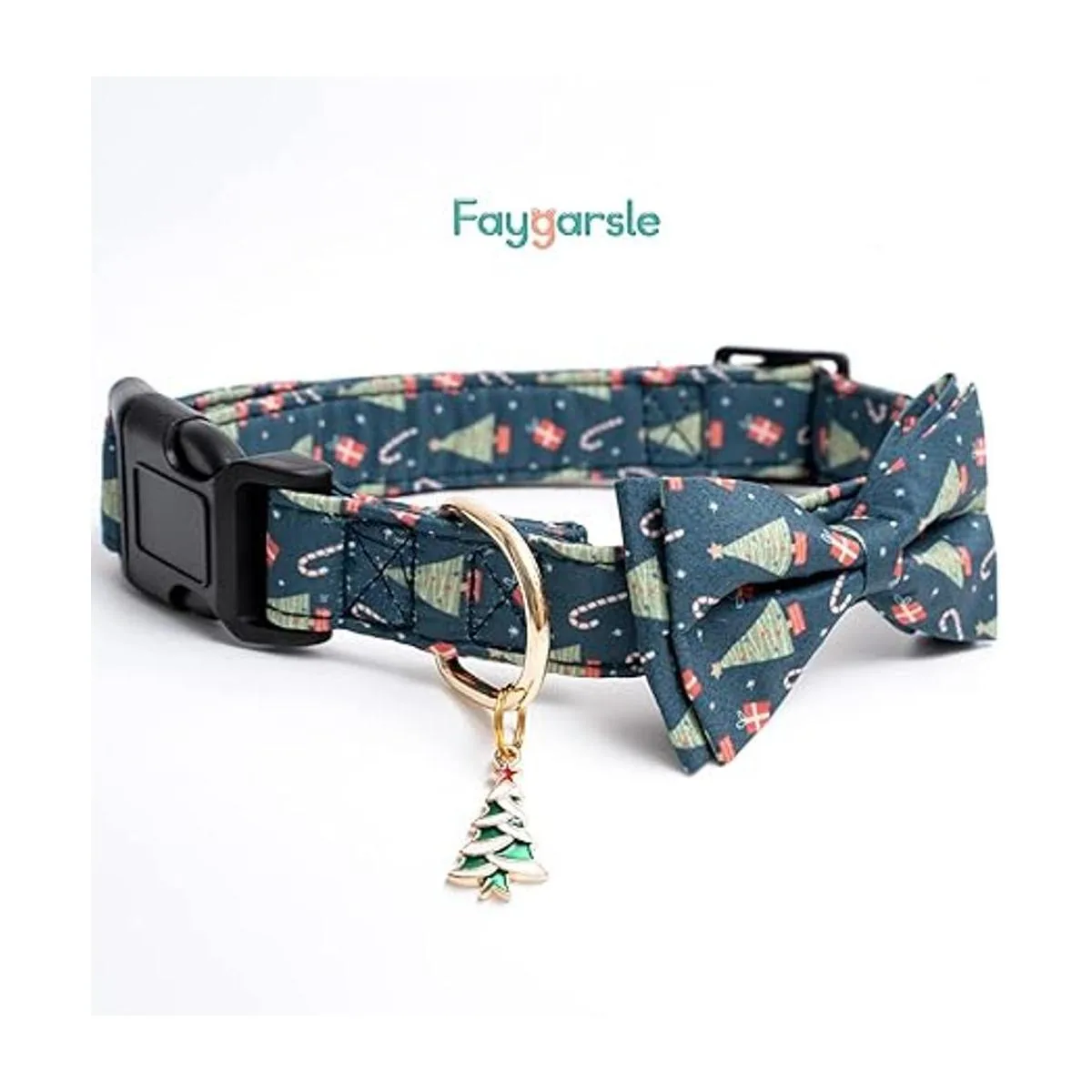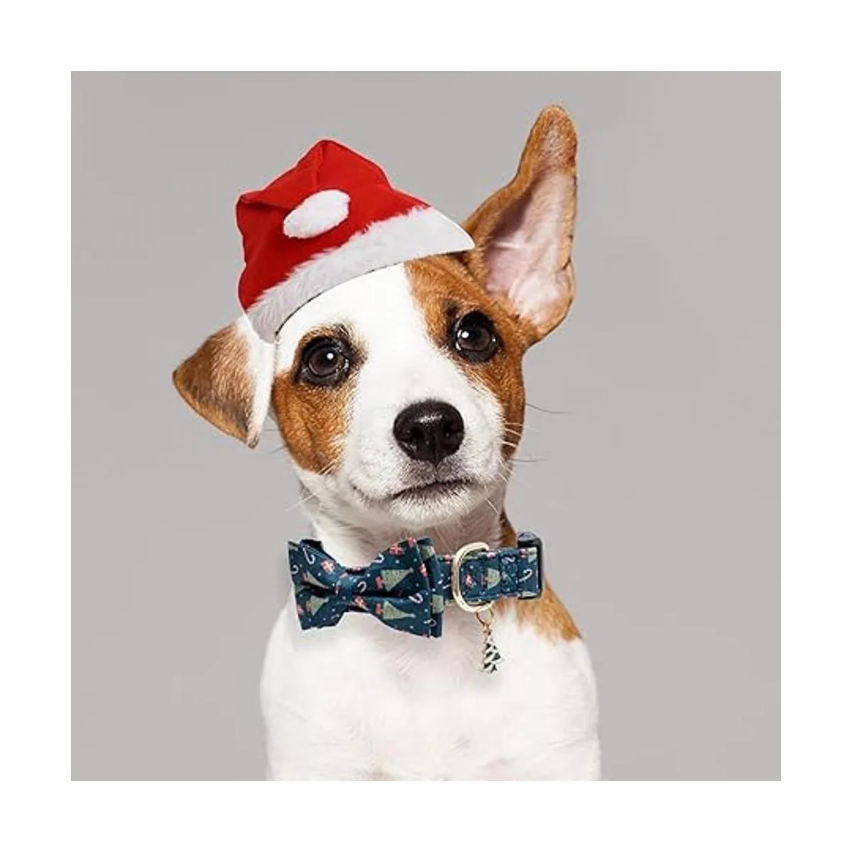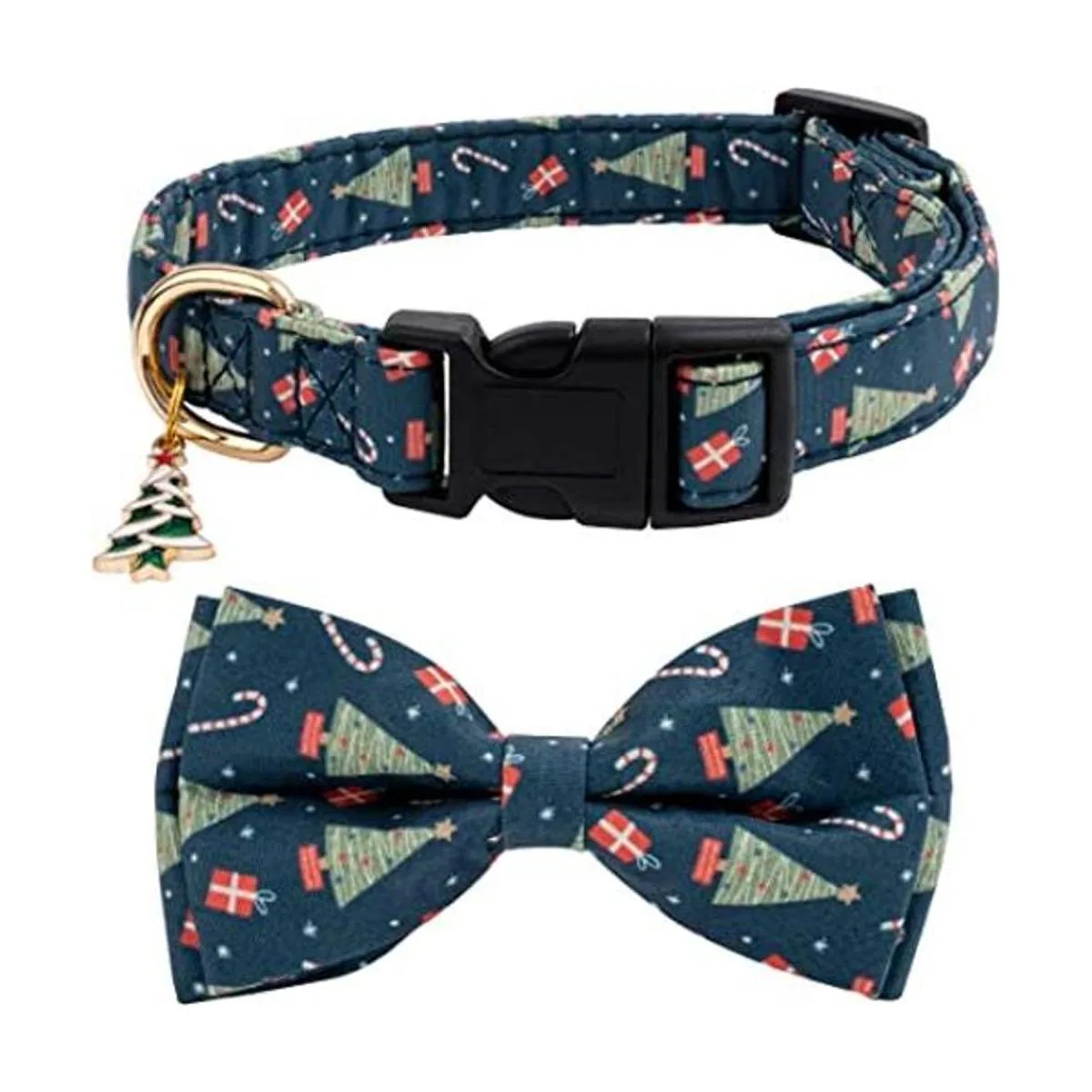 Collar de perro de Navidad de algodón con corbata de lazo para niñas, hembras y machos, collar para perros pequeños, medianos y grandes, con dije