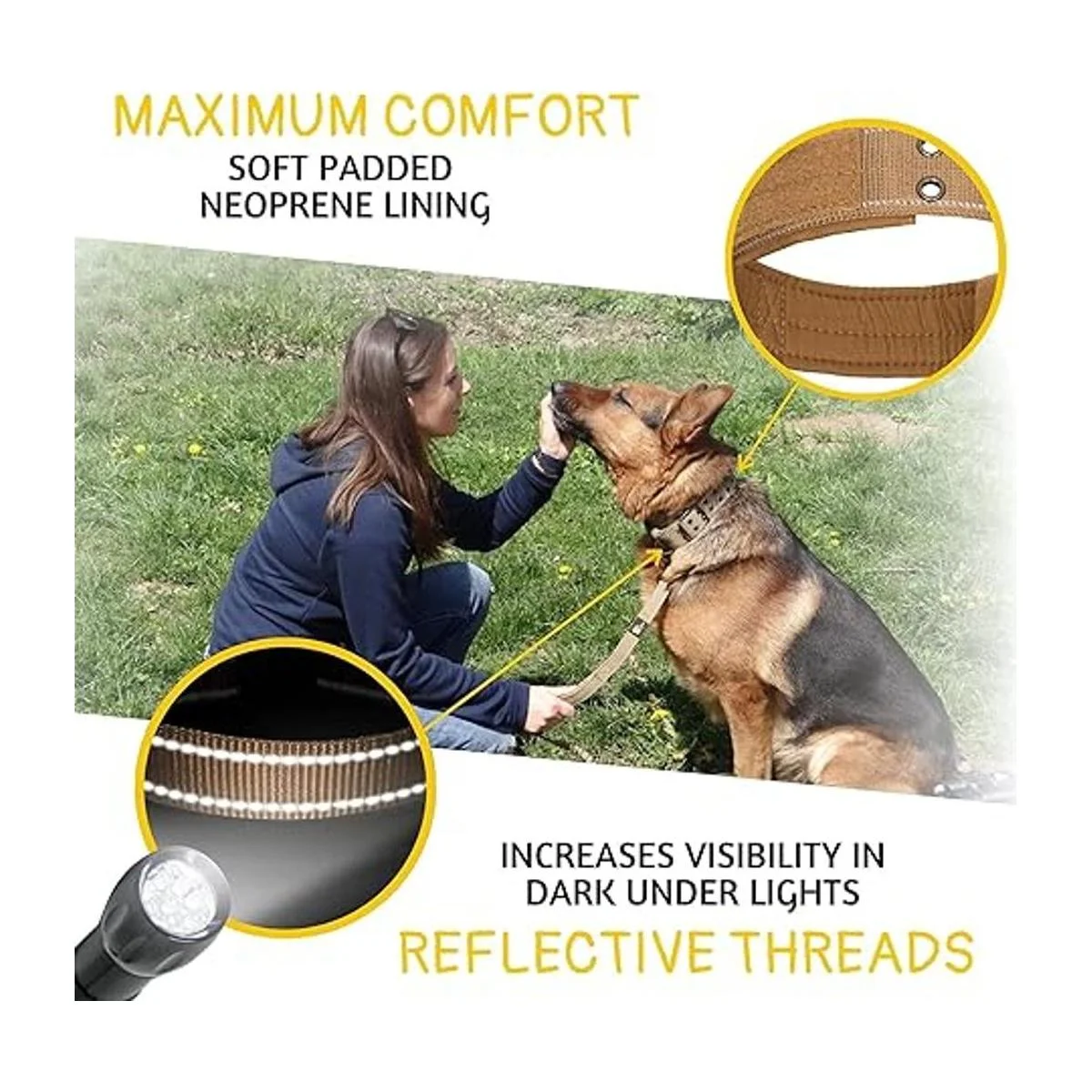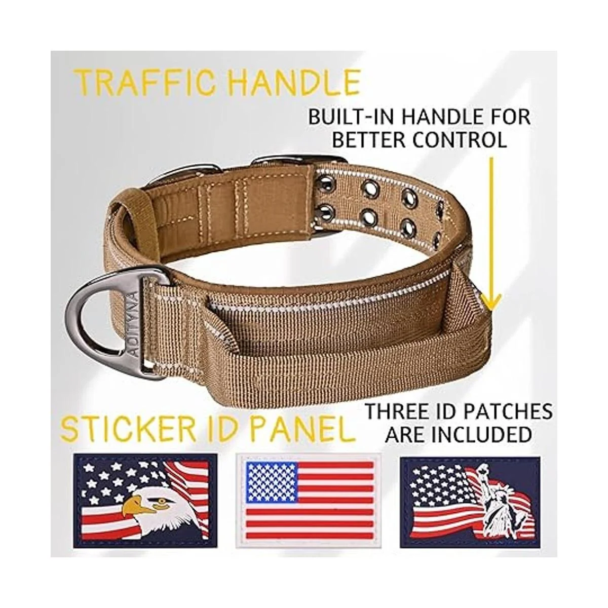 Collar de perro para perros grandes – Collar táctico con asa – Collar de perro de entrenamiento pesado, reflectante, suave y acolchado
