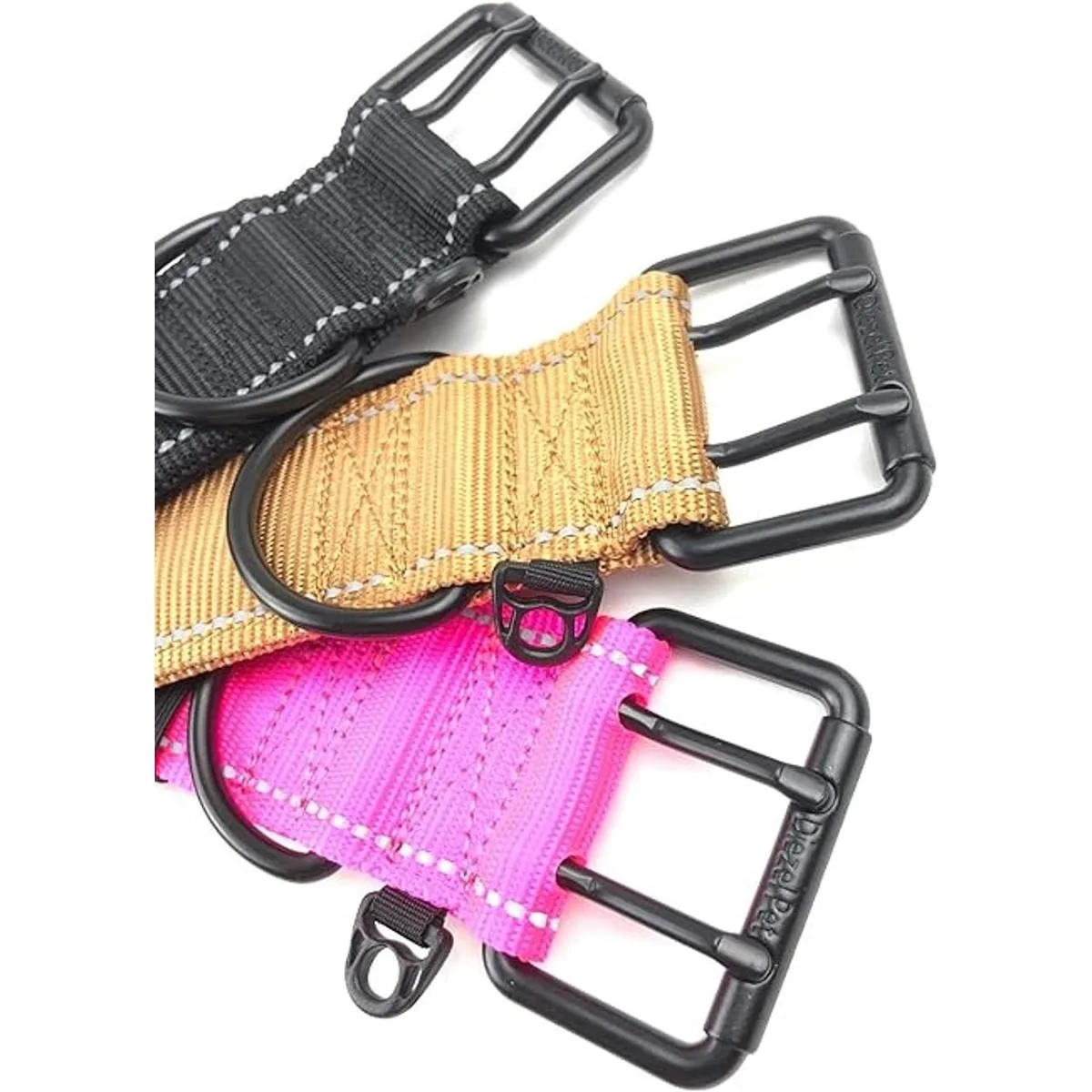 Hebilla de metal más fuerte mejorada. Fuerte hebilla de metal de dos pines estilo táctico punto de fijación para etiquetas de perros collares impermeables para perros de raza grande con un fuerte anillo en D grande de acero forjado rosca reflectante. Collares extra resistentes para protección. TRABAJO O SERVICIO K9.
