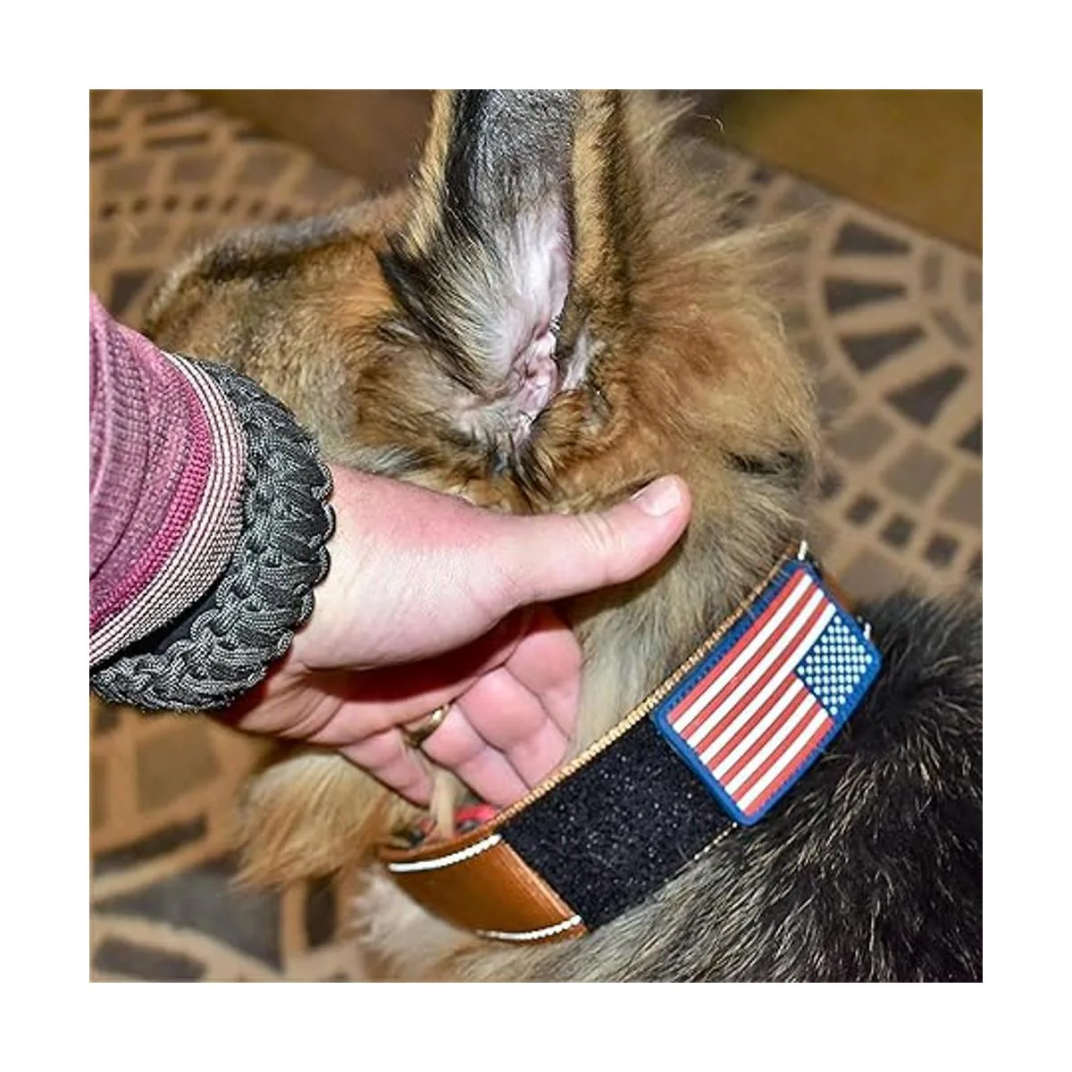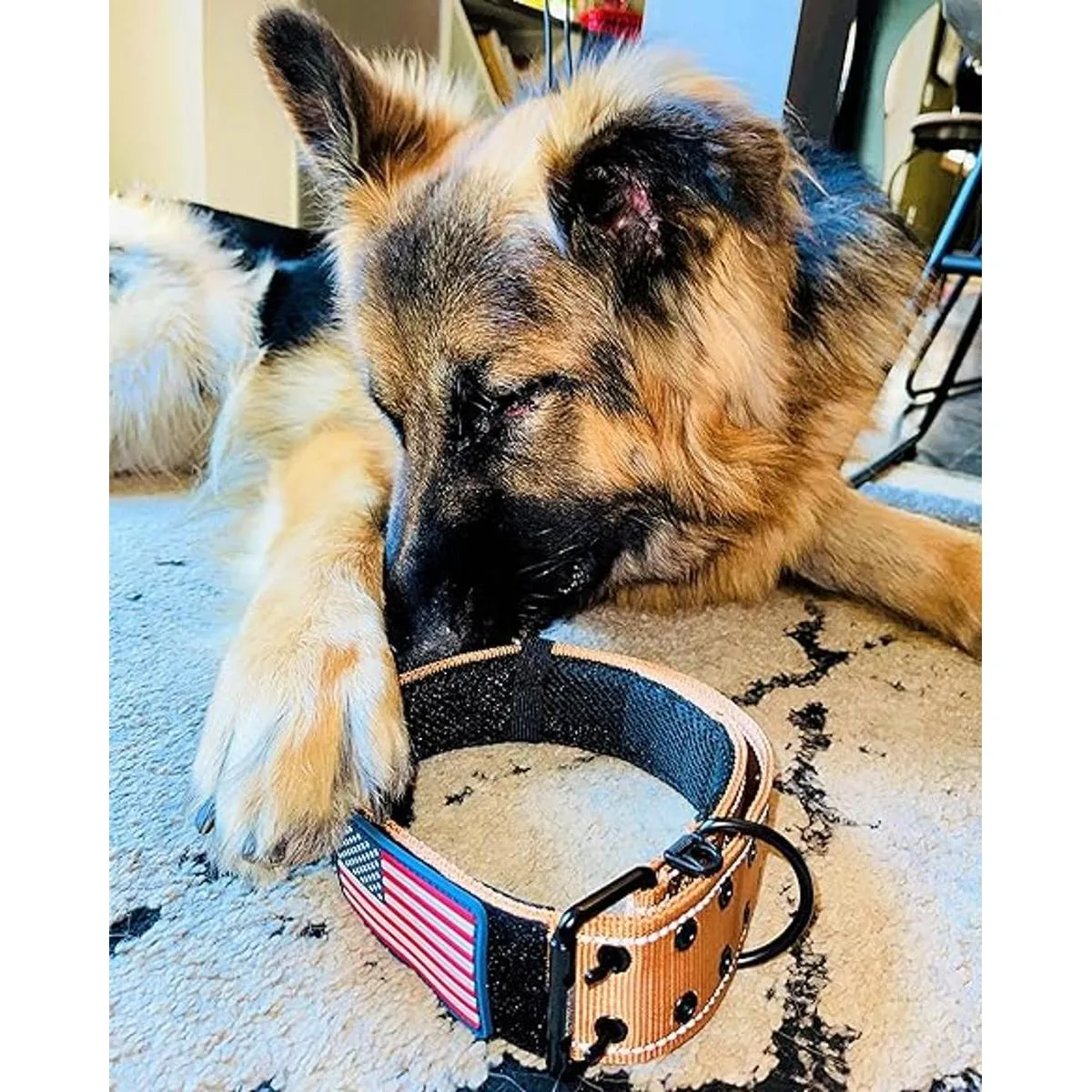 Collar de perro grande de color marrón postre para razas de perros extragrandes de 50 libras y típico más grande. No se ajusta si tu perro mide el tamaño del cuello no es de 20 pulgadas a 29 pulgadas Resistente 2 pulgadas de ancho estilo militar táctico acolchado de metal de doble pin. Hebilla para cinturón. Collar LE DOG con parche de bandera de Estados Unidos proporciona un buen aspecto para perros de servicio, terapia de perros que trabajan perros K9 y perros mascotas.