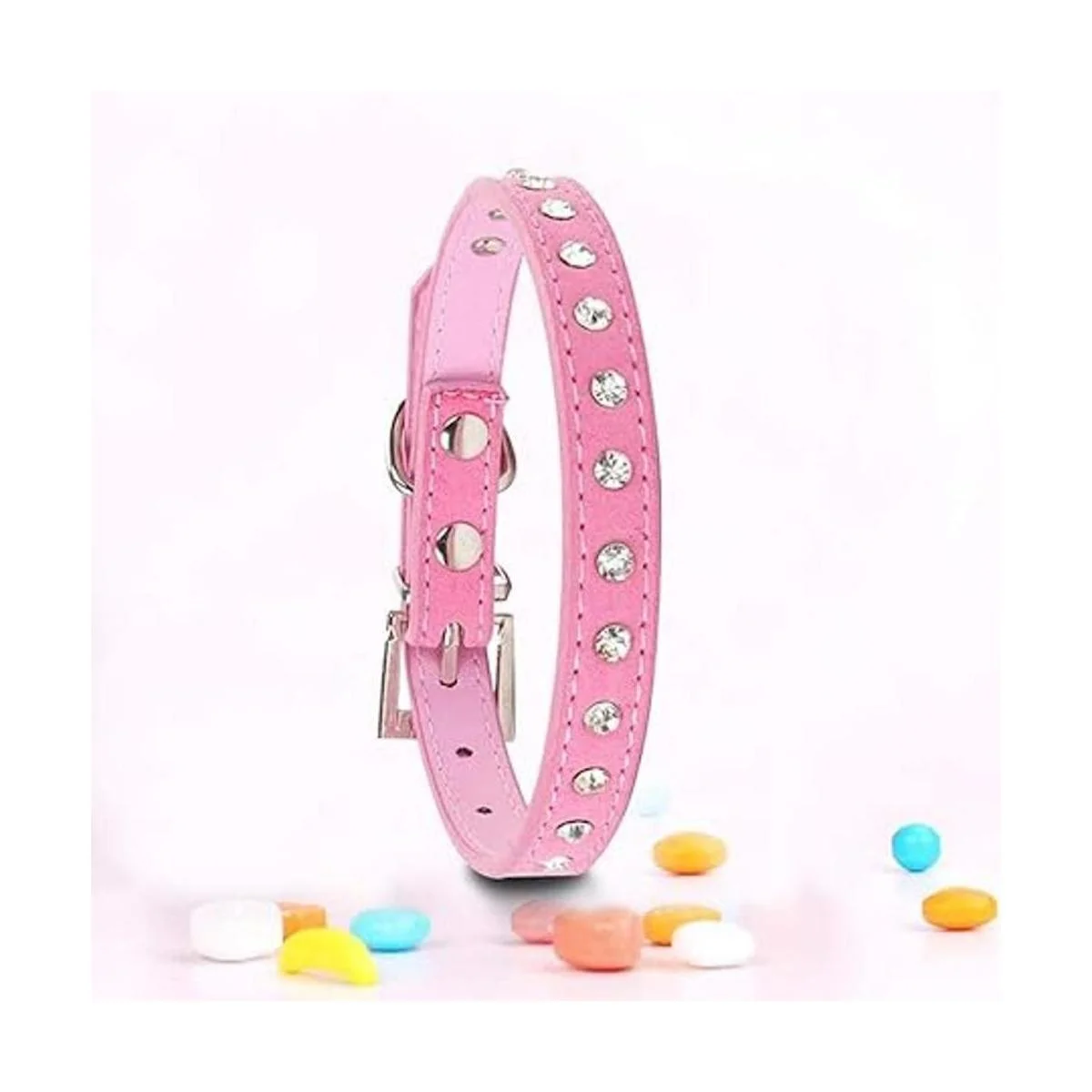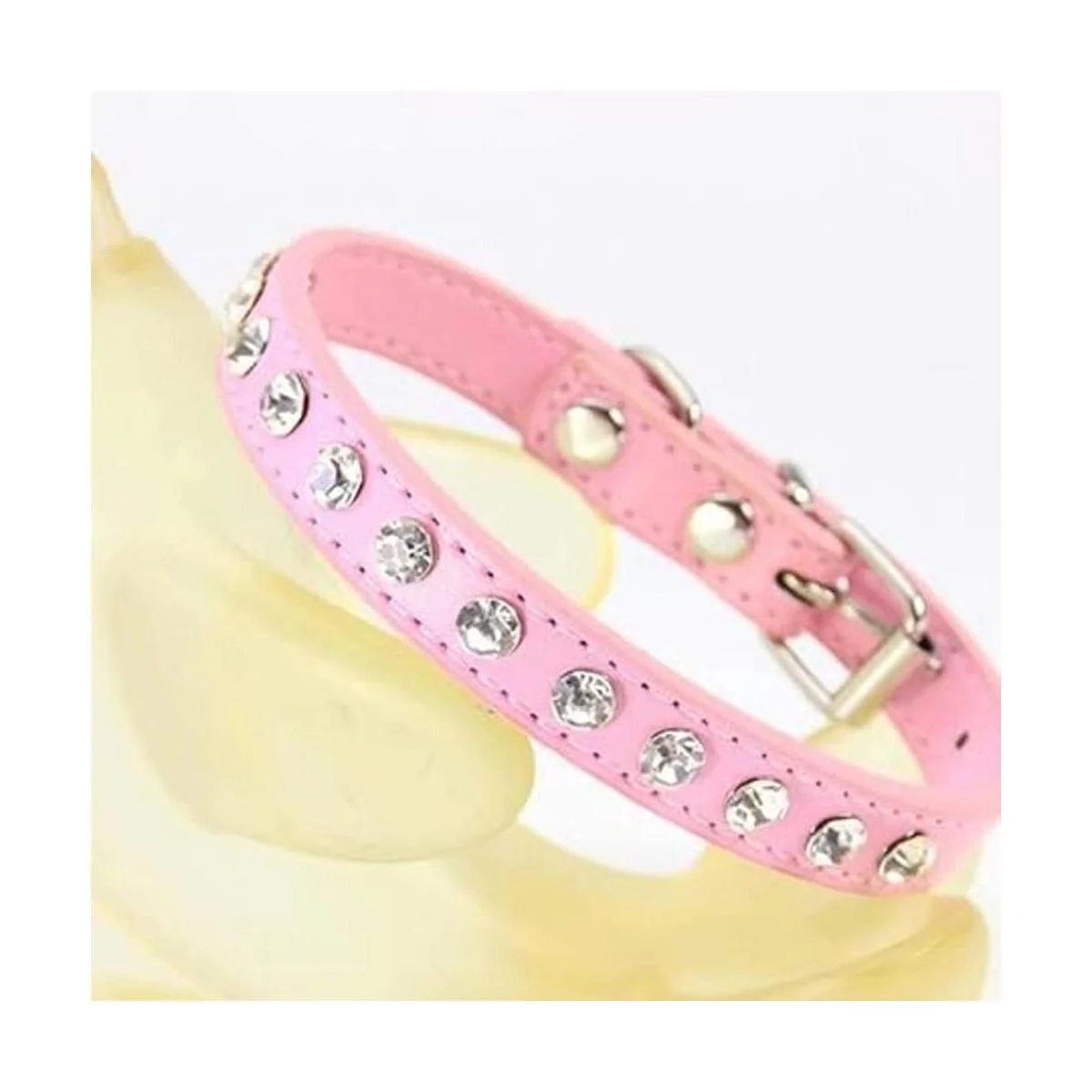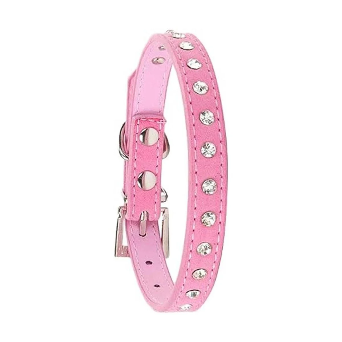 Collares de perro de piel sintética para perros pequeños ajustable pequeño collar de perro con diamantes de imitación collar de perro femenino personalizado rosa