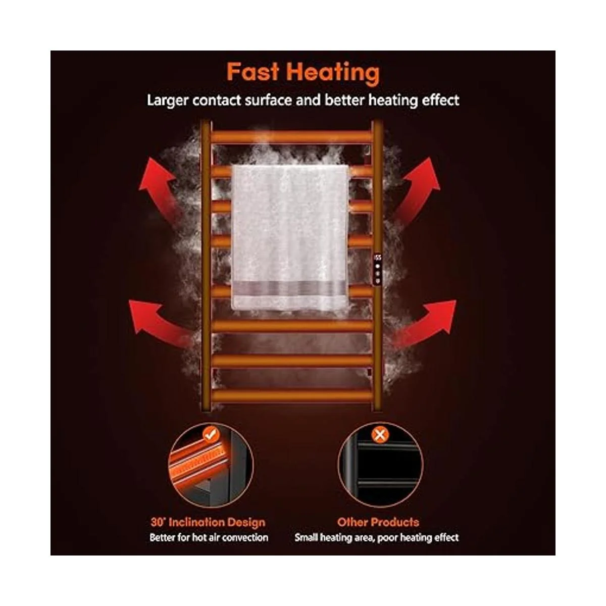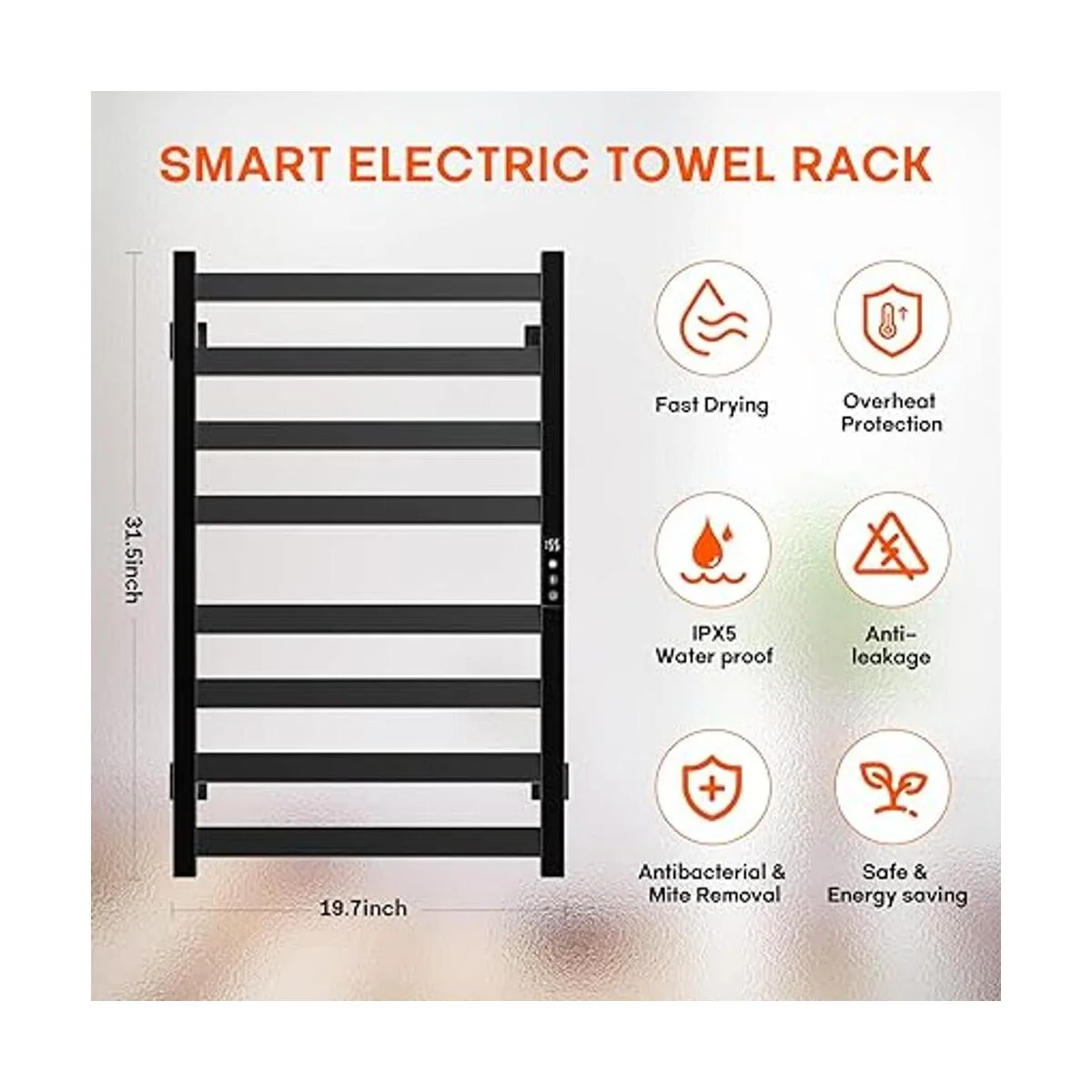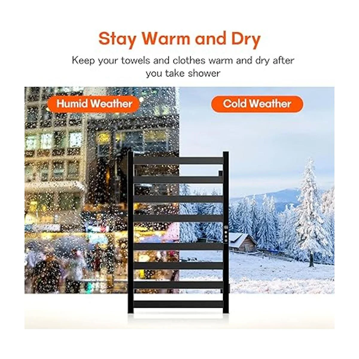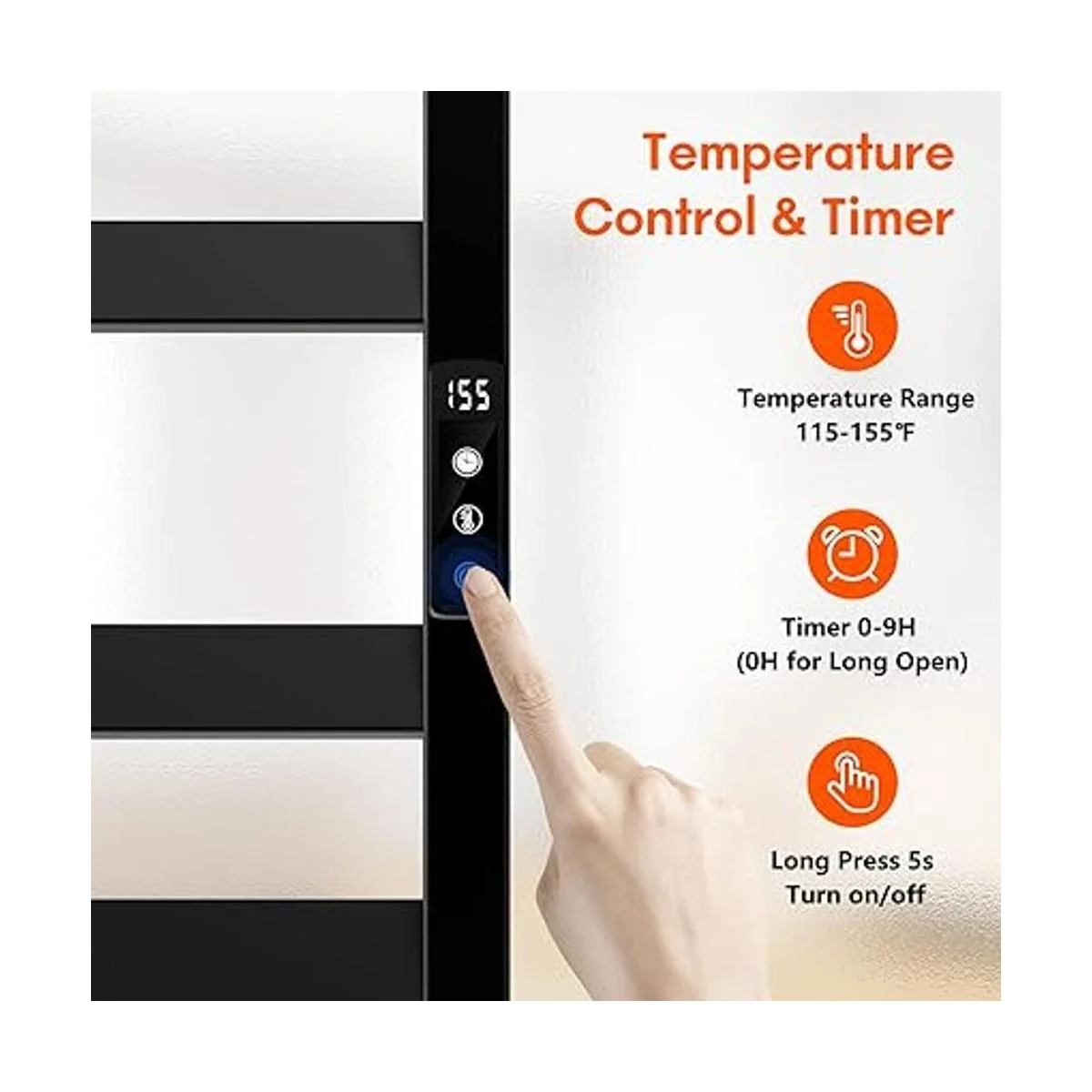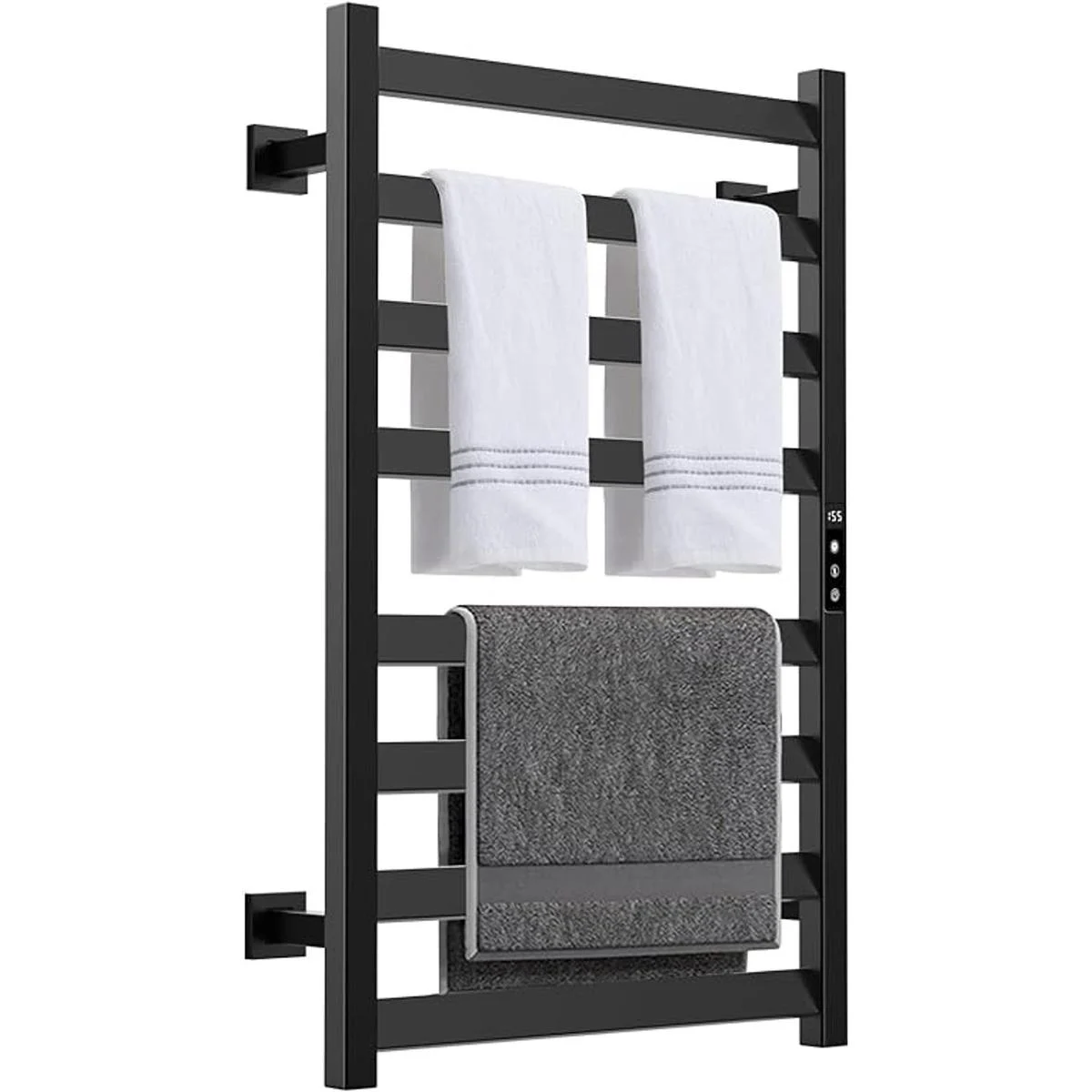 Colliford Calentador de toallas, calentador de toallas para baño, secadora de toallas eléctrica de 8 bar, calentador de baño enchufable, de acero inoxidable 201 con temporizador y control de temperatura inteligente