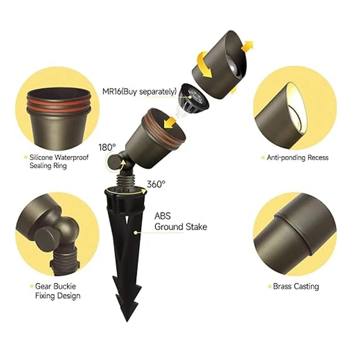 COLOER Foco de bajo voltaje, luces exteriores para patio, iluminación LED de latón de 12 V ACDC, luces impermeables IP65 para entrada de jardín bronce, 1 paquete sin bombilla