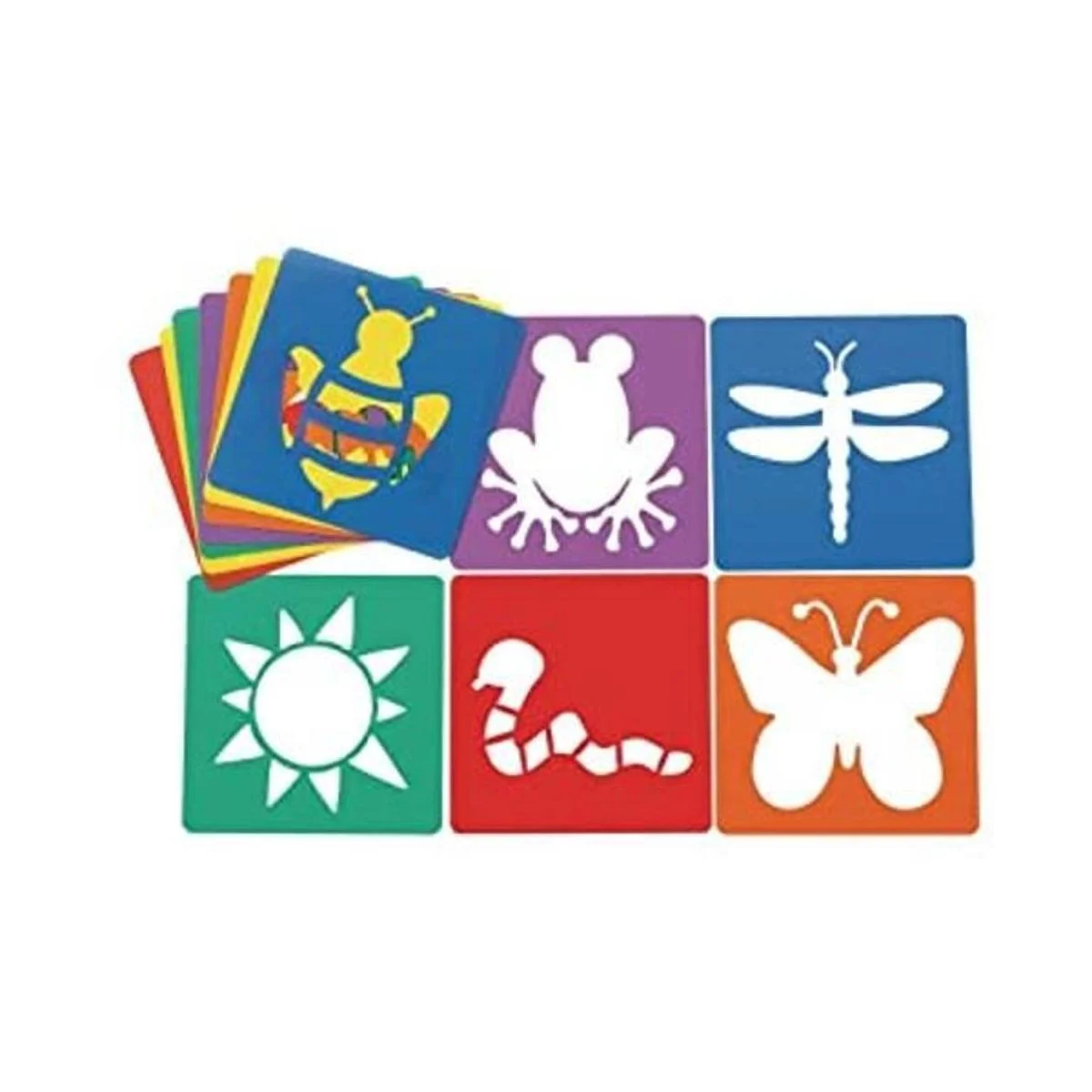 Lo que obtienes: las plantillas de 8 pulgadas están hechas de plástico duradero y lavable. 12 formas temáticas de jardín incluyen: abeja, rana, libélula, gusano, sol, serpiente, mariposa y mucho más.