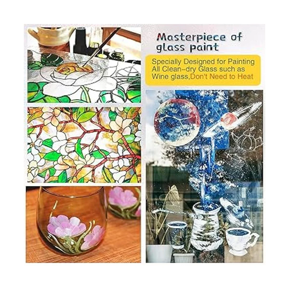 Amplia aplicación Nuestro juego de pinturas para vidrios no es solo para vidrio, sino que también se pueden aplicar en otras superficies transparentes como copas de vino, porcelana, ventanas y cerámica.