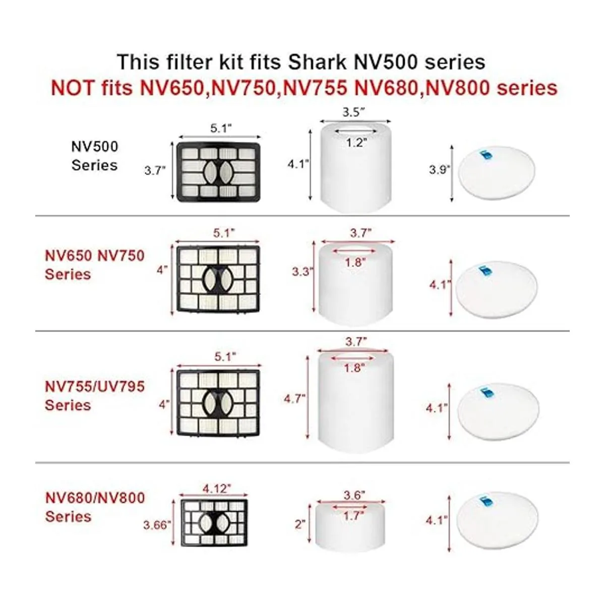 Filtro de repuesto de espuma y fieltro y filtro HEPA para Shark nv500, en comparación con la parte xff500