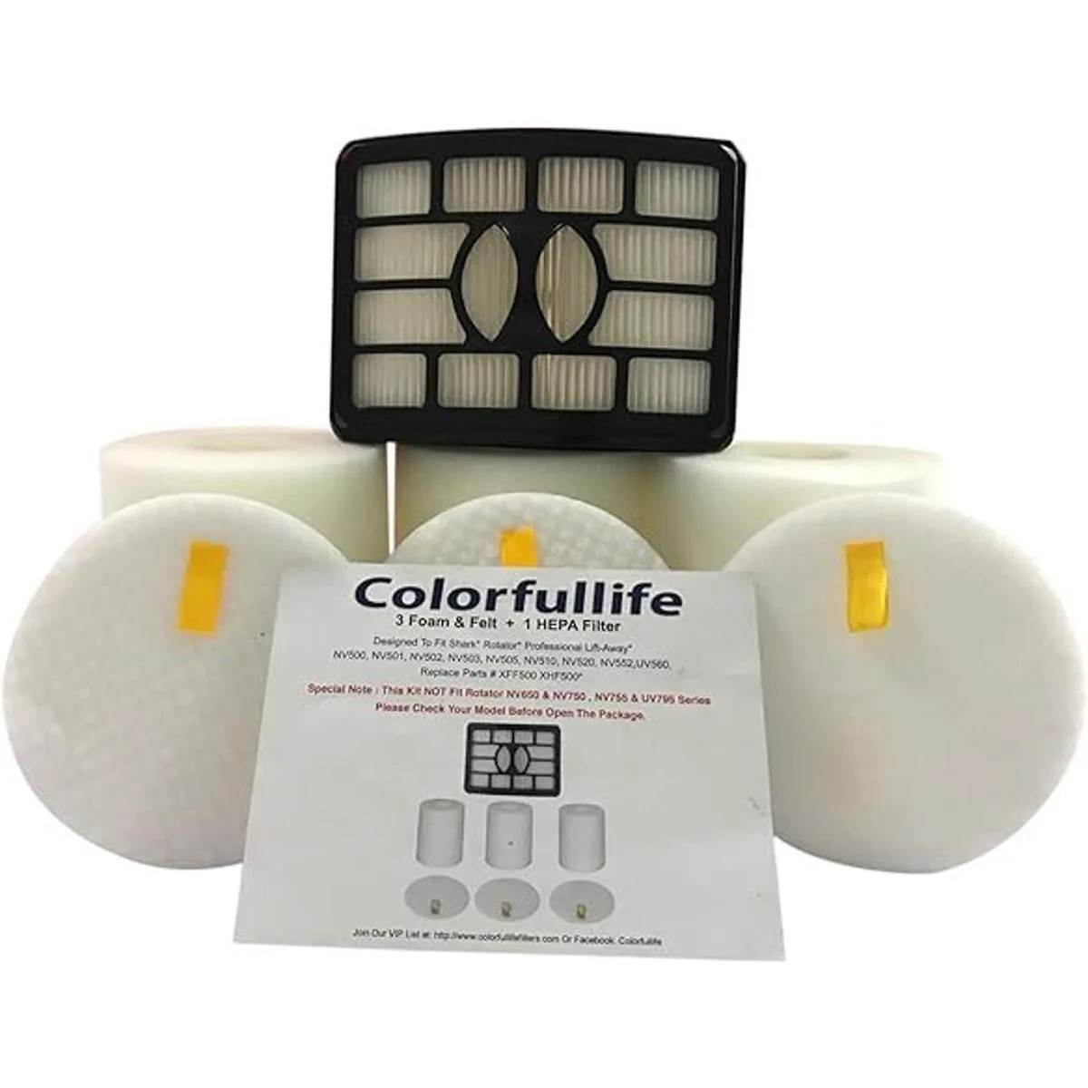 Colorfullife Juego para Shark Pro liftaway NV500 Filtro HEPA y filtro de espuma Contiene 2 filtro de espuma y 1 filtro HEPA Comparar con parte No. Xff500 Xhf500