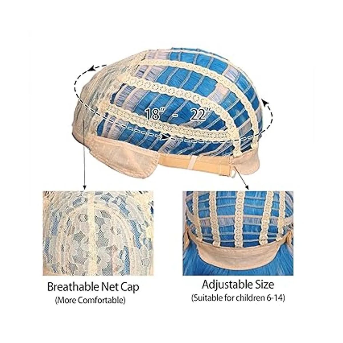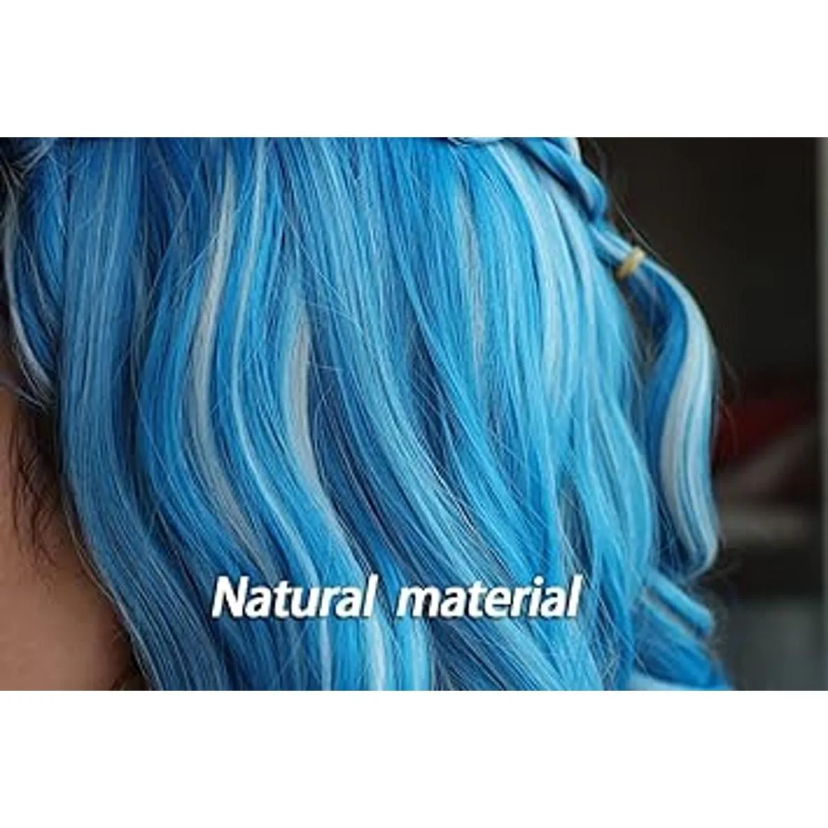 ColorGround Peluca larga ondulada azul con blanco plateado para cosplay