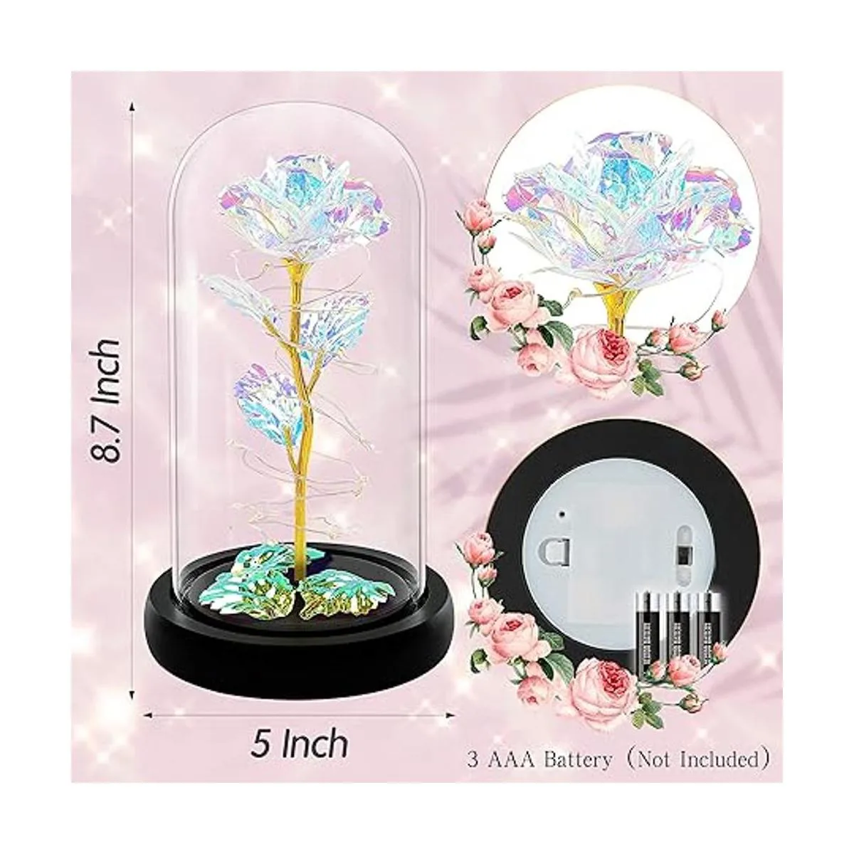 Colorida flor de rosa regalo para San Valentín, regalo de cumpleaños para mujer, regalo de cumpleaños colorido de flores artificiales, cadena de luz LED en una cúpula de cristal, regalo único para ella, regalos del día de San Valentín