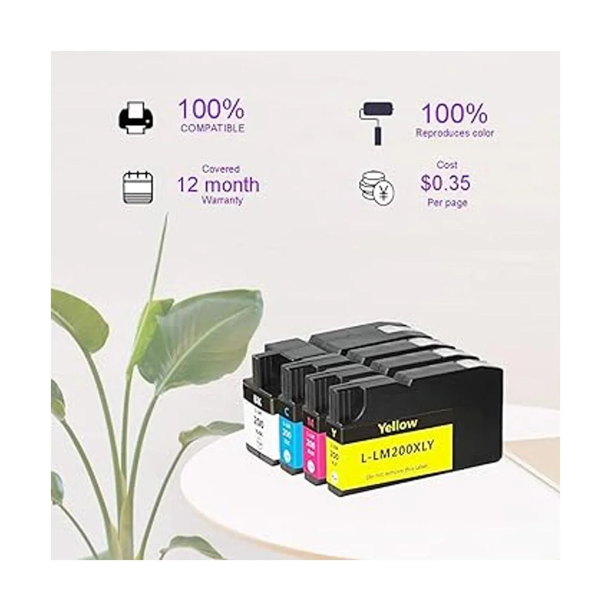 El paquete contiene: 1 cartucho de tinta negro, 1 amarillo, 1 magenta, 1 cian 4PK Compabile Lexmark 200XL.