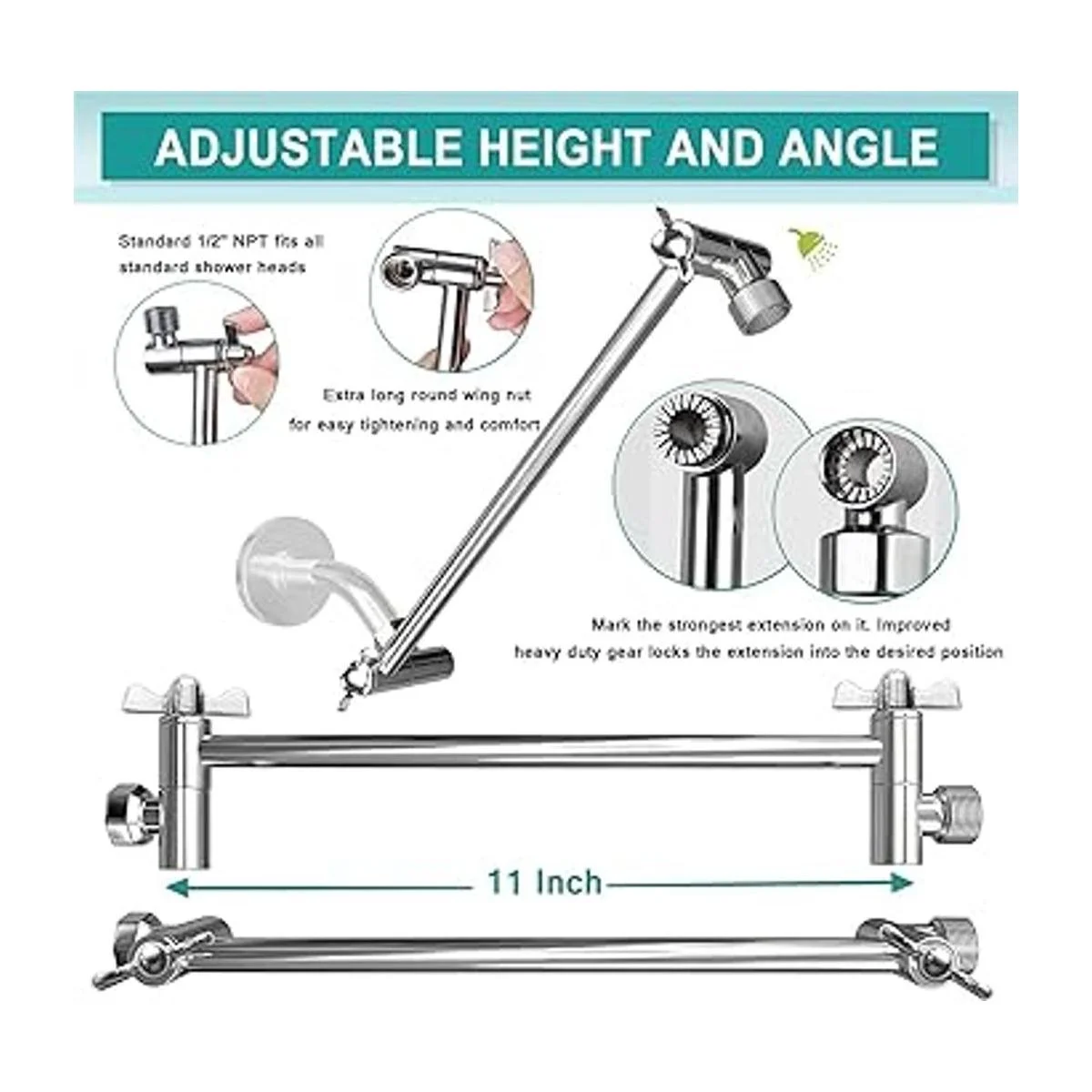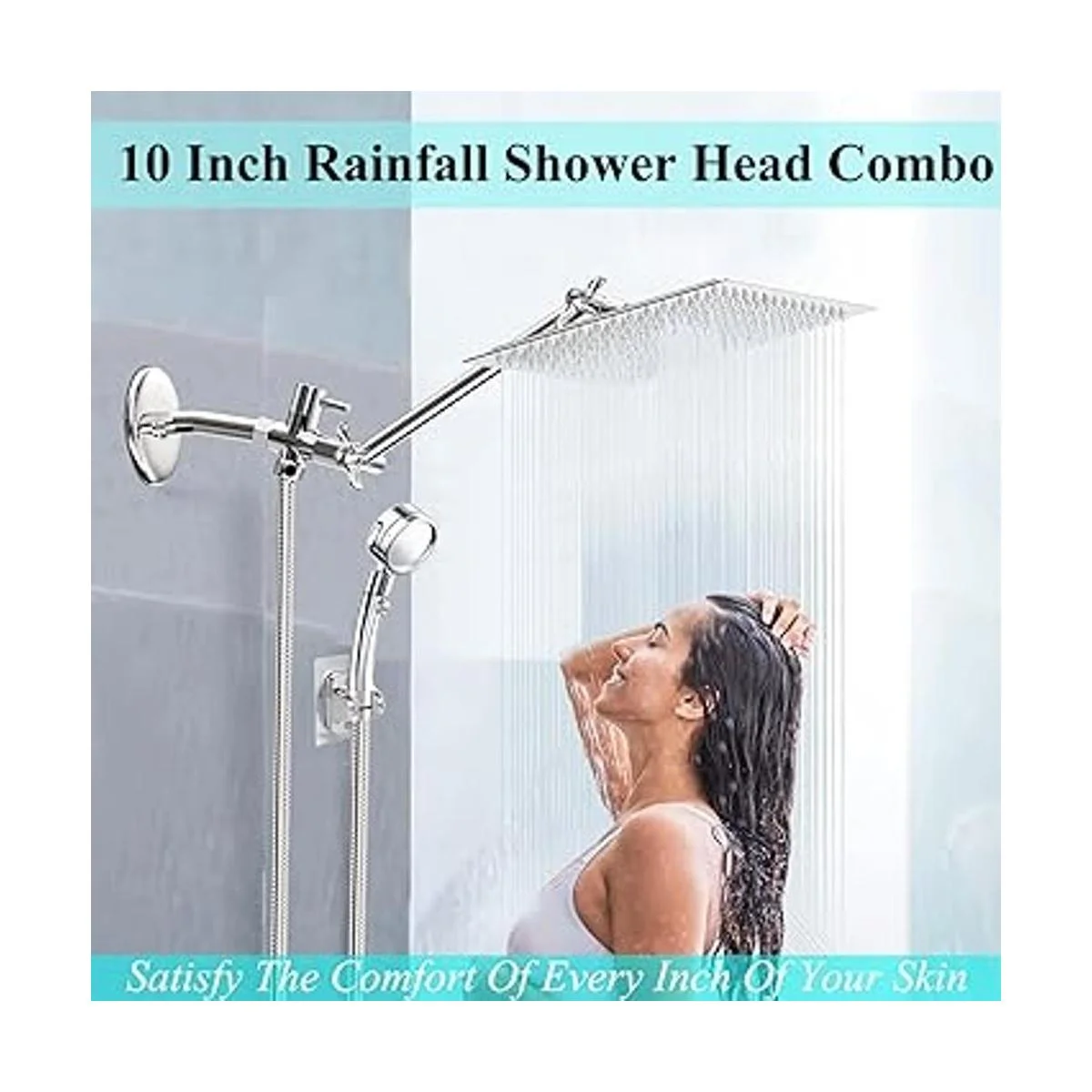 Combo de cabezal de ducha, cabezal de ducha de alta presión de 10 pulgadas, cabezal de ducha de mano de 3 ajustes con brazo de extensión, soporte de regadera, manguera de 78 pulgadas, cromado cromado