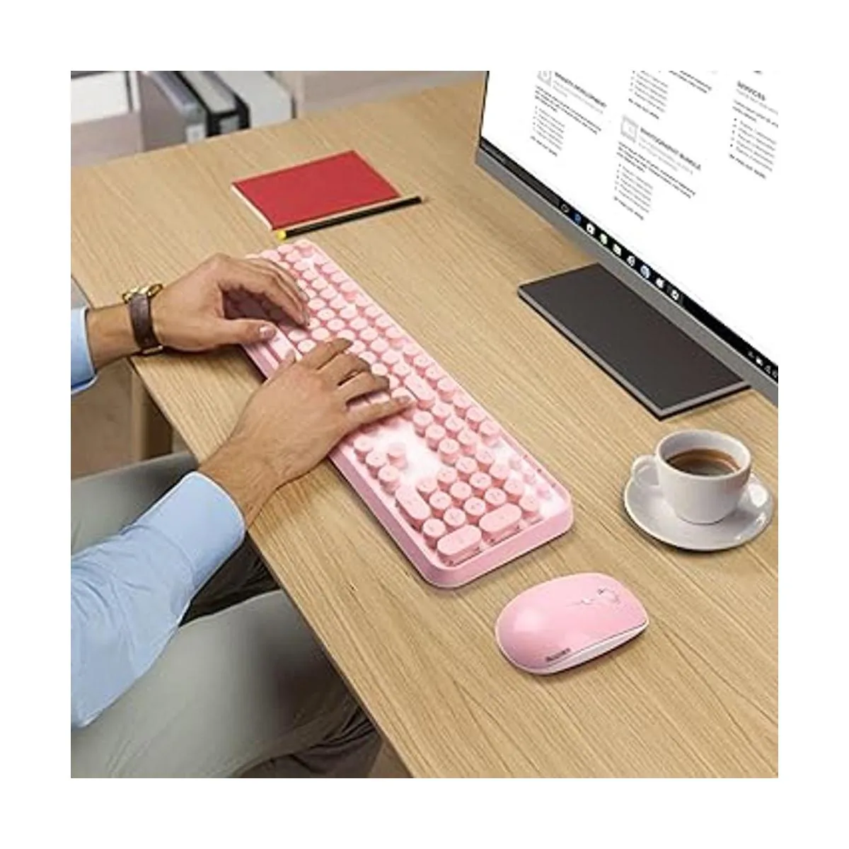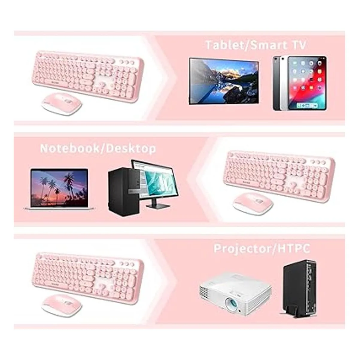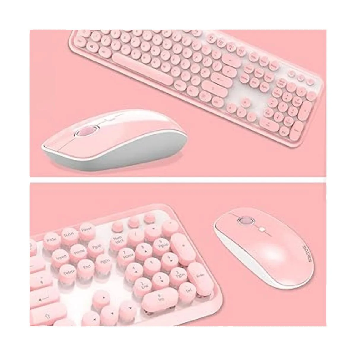 Combo de teclado inalámbrico rosa, combo de teclado y mouse inalámbrico retro de 2.4 GHz, teclado de computadora de oficina inalámbrico de tamaño completo Letton y lindo mouse con 3 DPI para Mac PC y laptop de escritorio