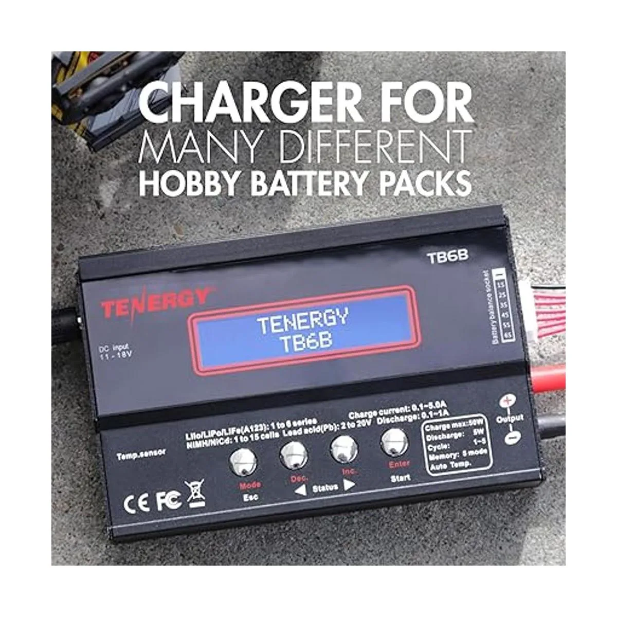 Un cargador para muchos paquetes de baterías: el cargador/descargador de equilibrio Tenergy TB6B es ideal para todos los paquetes de baterías de hobby que son NiMH, NiCd, LiPO, Liion, LiFePO4 y SLA.