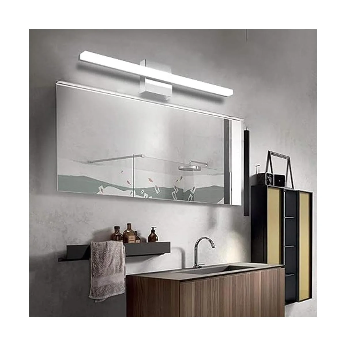 Alta calidad: la lámpara de pared de baño sobre espejo está hecha de base de acero inoxidable y acrílico, más duradera, no se oxida