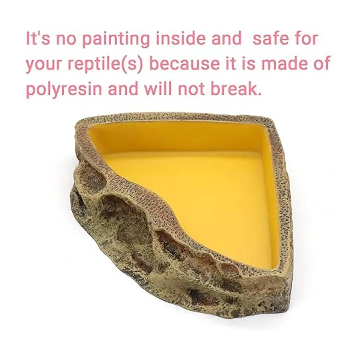Material seguro: los cuencos de agua para reptiles están hechos de resina, que es segura y duradera. El interior de los accesorios del dragón barbudo no está pintado y no causará problemas con el pelado de la pintura.
