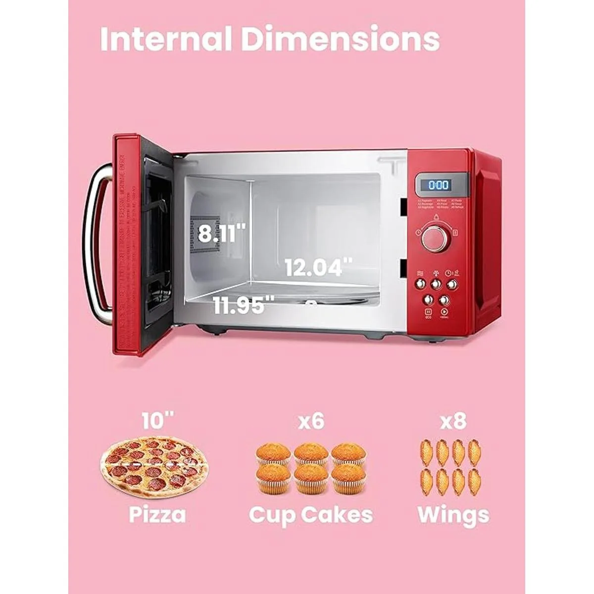 Bonito diseño retro: el microondas rojo retro cómodo con diseño retro compacto y lindo encaja muy bien en tu pequeña cocina, dormitorio, cocina, armarios, oficinas o encimera de jardín al aire libre.