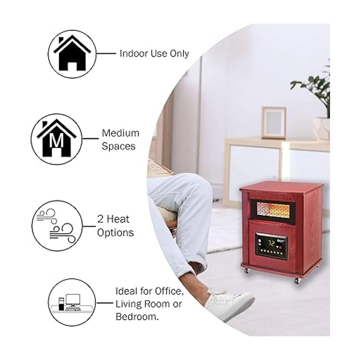 Comfort Zone CZ2032C Calentador de madera de cuarzo infrarrojo de 7501,500 vatios de 16 pulgadas con control remoto y termostato ajustable con pantalla digital, protección contra sobrecalentamiento, acabado cereza