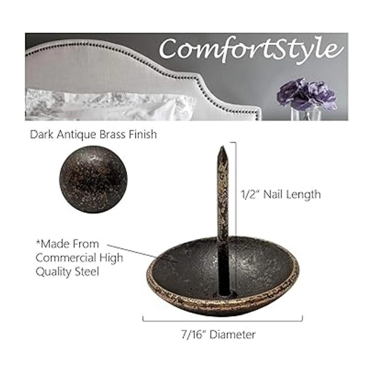 ComfortStyle Premium Tapicería Tapicería Tapicería Uñas Adornos Decorativos para Muebles, 716 pulgadas de Diámetro 100 unidades, Latón Antiguo Oscuro