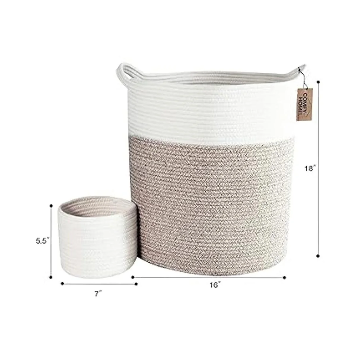 COMFYHOMI Canasta grande de 18 x 16 pulgadas de alto, canasta decorativa de cuerda de algodón tejida con asas, cesta decorativa para mantas, cesta redonda de almacenamiento para sala de estar, ropa, almohadas, toallas (blanco marrón)