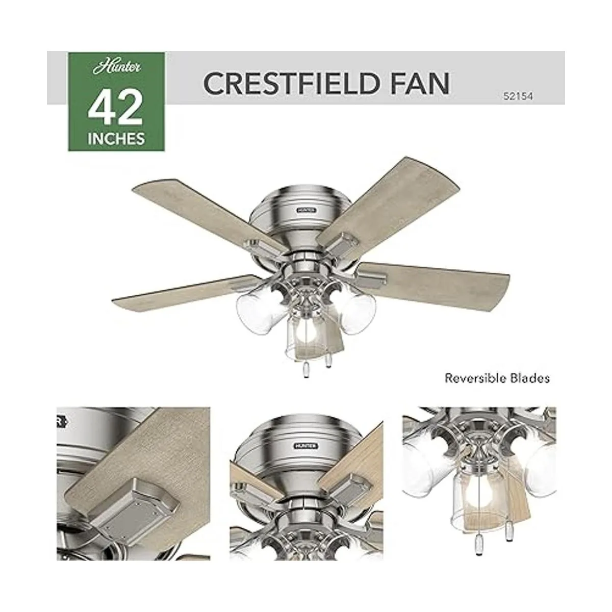 Ventilador clásico de techo: el ventilador tradicional Crestfield viene con luz LED con cristal transparente que mantendrá el interior del hogar inspirado; mide 42 x 42 x 15.08 pulgadas.