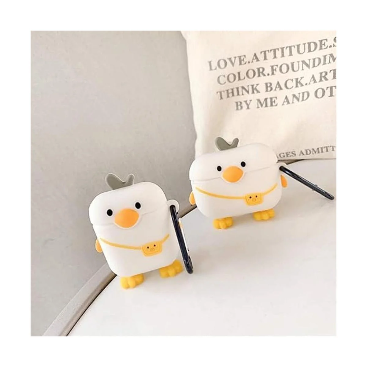 Compatible con AirPods Pro Funda blanca de pato, para niños, adolescentes, niñas, niños y mujeres, piel protectora de silicona para AirPod Funda de pato lindo, divertida funda Kawaii de dibujos animados para AirPods Pro con llavero