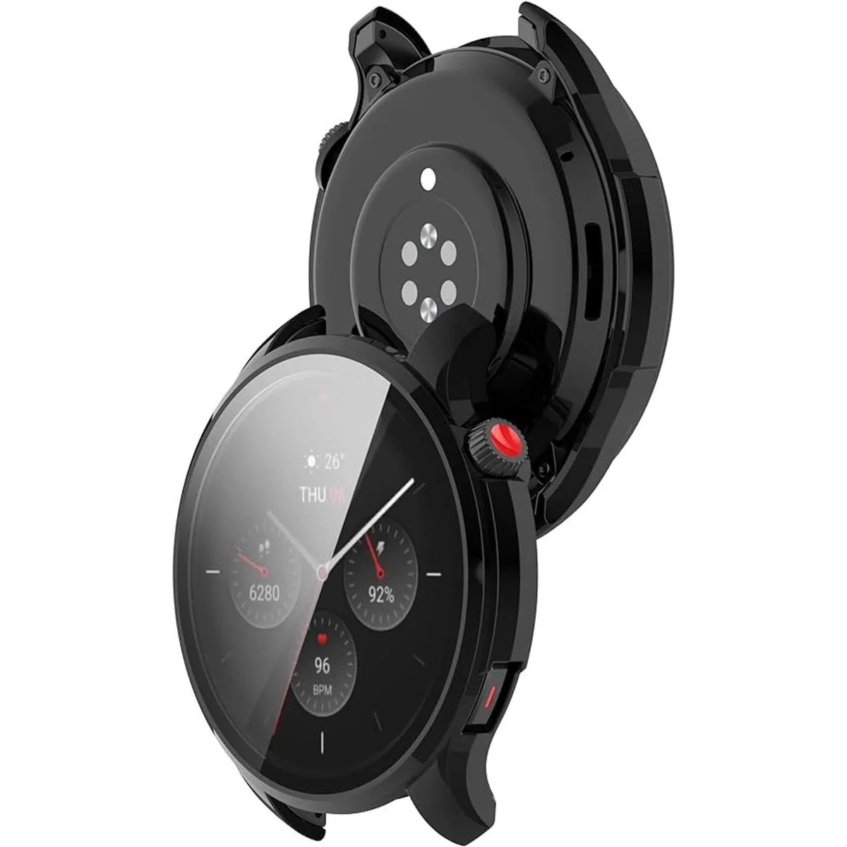 Compatible con Amazfit GTR 4, funda protectora de policarbonato de cubierta completa resistente a los arañazos con protector de pantalla de vidrio templado HD para Amazfit GTR4 negro3