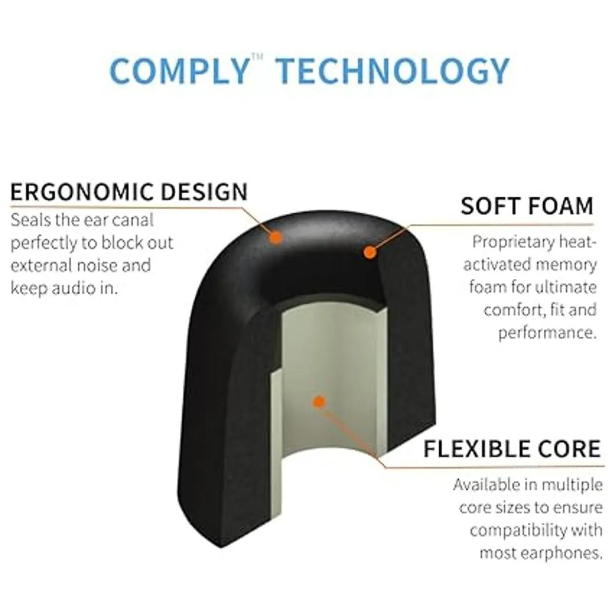 Comply Almohadillas para oído de espuma Premium almohadillas aislamiento T100 Negro, 3 pares, tamaño grande 500 S Negro