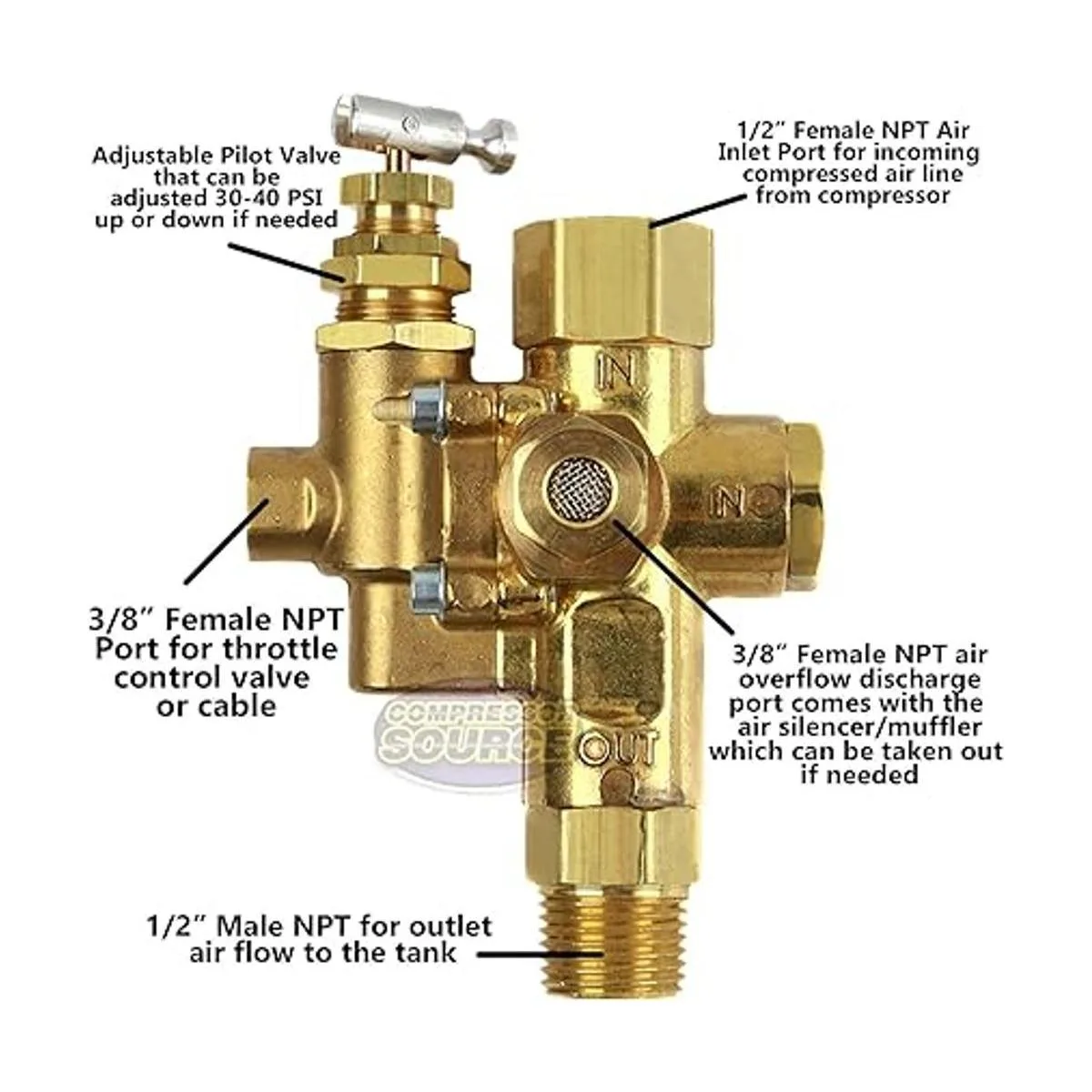 Compresor de aire piloto válvula de retención descargador combinación de gas descarga 95125 12 FPT TOP INLET X 12 MNPT OUTLET PARA COMPRESORS DE GAS