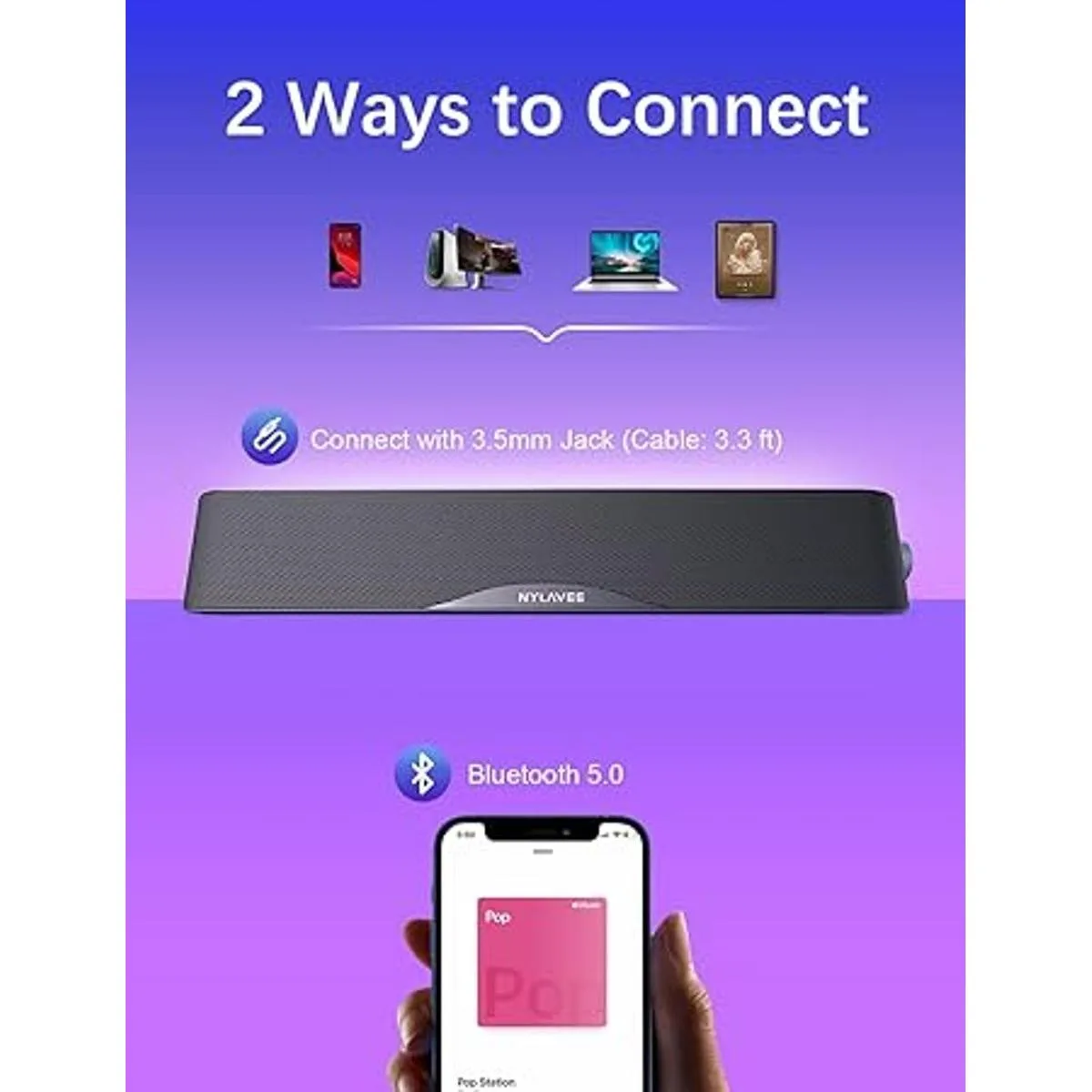 Computer Speakers, HiFi Sound Quality Computer Sound Bar, USB Powered PC Speakers, Bluetooth 5.0 and 3.5mm Auxin Computer Speakers for Desktop, Laptops, PCs, Phones, Tablets, Xbox, Gaming Speakers