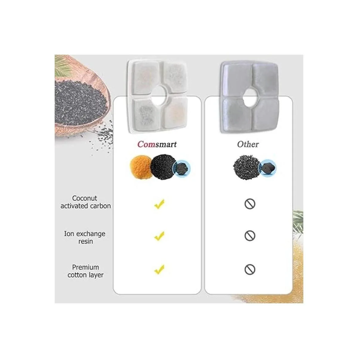 Comsmart Juego de filtros de fuente para mascotas, 3 filtros de fuente de agua de repuesto para gatos de 84 onzas 2.5 litros, fuente de agua automática para mascotas