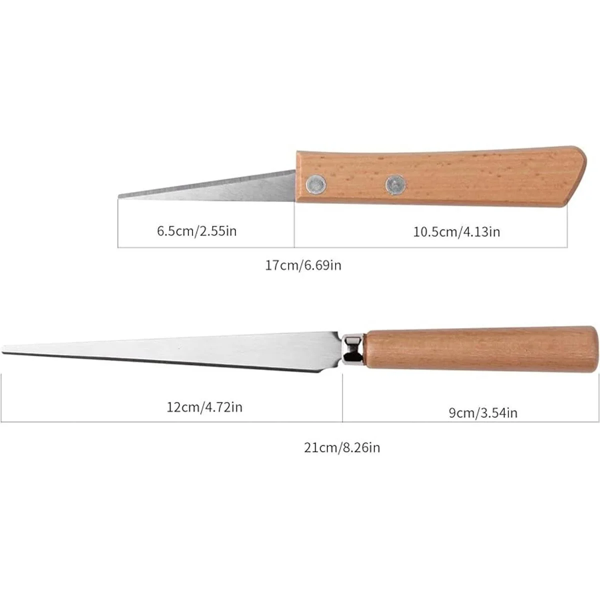 Longitud del cuchillo largo: 81/4 pulgadas. Cuchillo corto: 61/2 pulgadas
