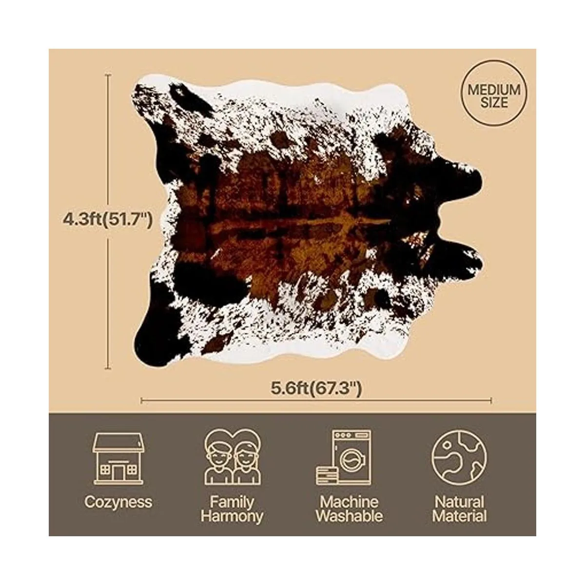 CONBEN Alfombra con estampado de vaca M