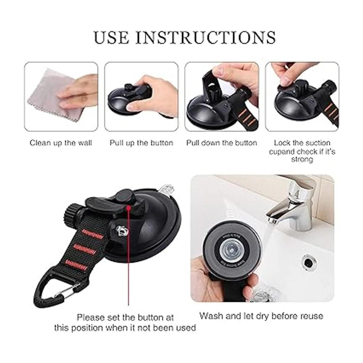 CONBOLA 2 Ventosas de alta resistencia con ganchos para automóvil, campamento, con ventosa para campamento, accesorio con gancho de seguridad, fuerte potencia para automóvil, toldo, lancha, trampa de campamento.