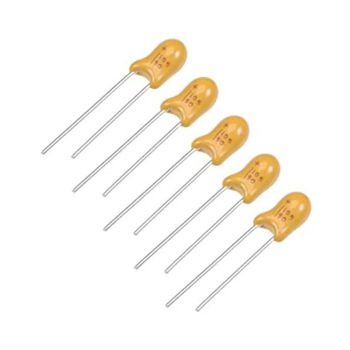 Condensador de tantalio uxcell 1uF, 50 V, 2 pines, condensadores de cuentas de tantalio amarillo radial, 5 unidades