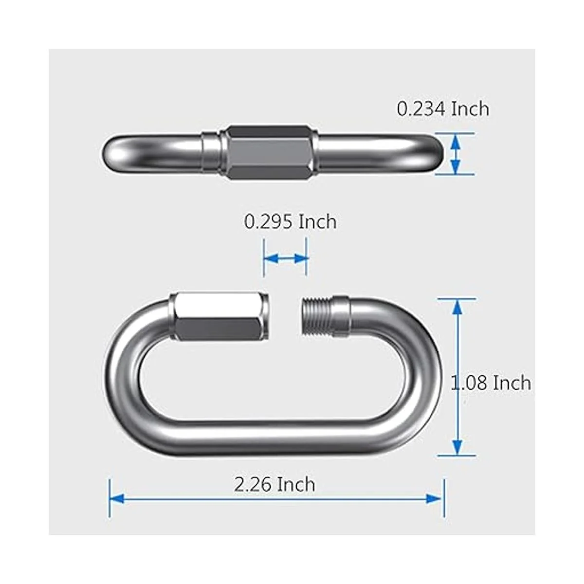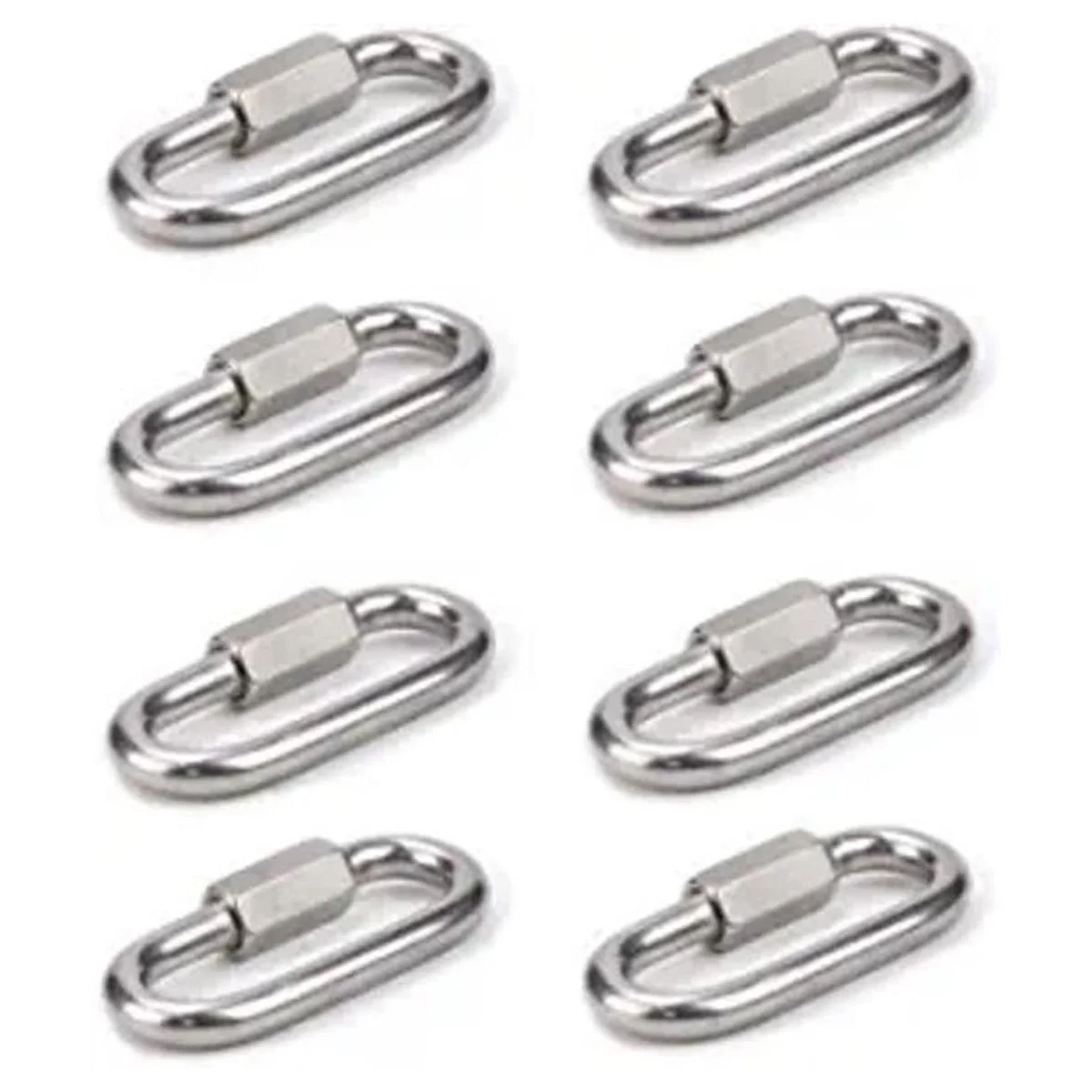 Conector de cadena de enlace rápido de acero inoxidable 304 M6 14 pulgadas, 8 unidades, resistente en forma de D, conector de cadena de bloqueo para jaula de pájaros, camping y equipo al aire libre, hamaca llavero con hebilla