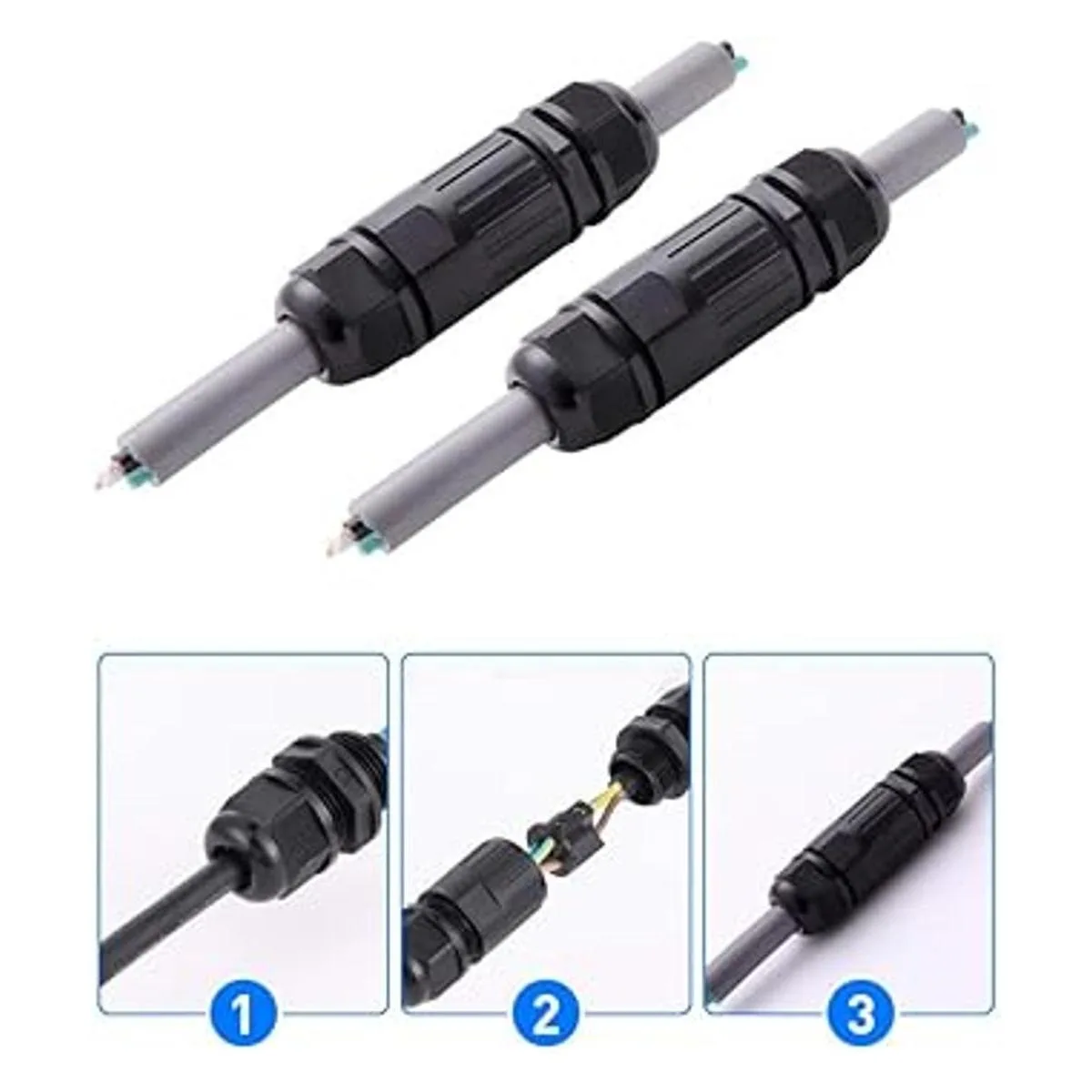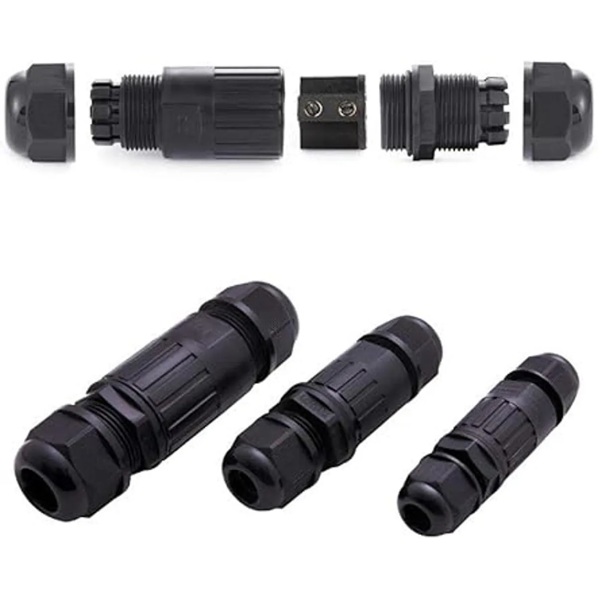 Conector de caja de derivación de 3 pines resistente al agua, cable eléctrico en línea, enchufe delgado IP68 para sistema de panel solar, lámpara LED al aire libre, conexión de cable eléctrico