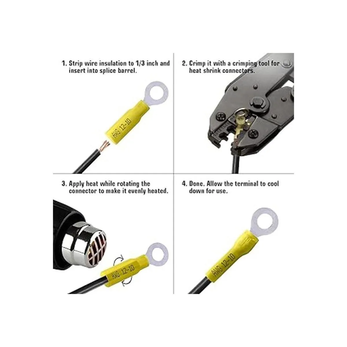 EASY APPLICATION : Sopoby heat shrink connectors can be applied seconds in any industry. Simply strip the wire, make a crimp and apply heat. Your secure and durable connection is ready. Perfectly working for any electrical application like marine, auto, home, audio, trailer wiring,etc.