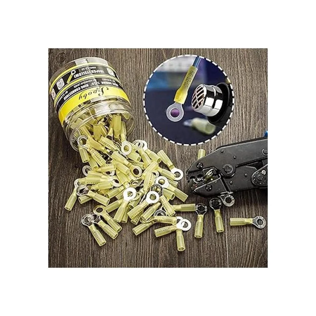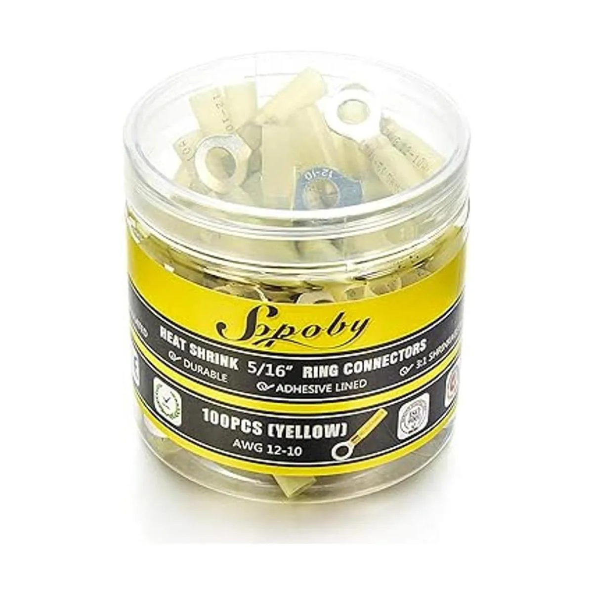Conectores de anillo termorretráctiles amarillos 1210 AWG Sopoby eléctrico Crimp Ring Conectores Terminales de cable termorretráctil Kit