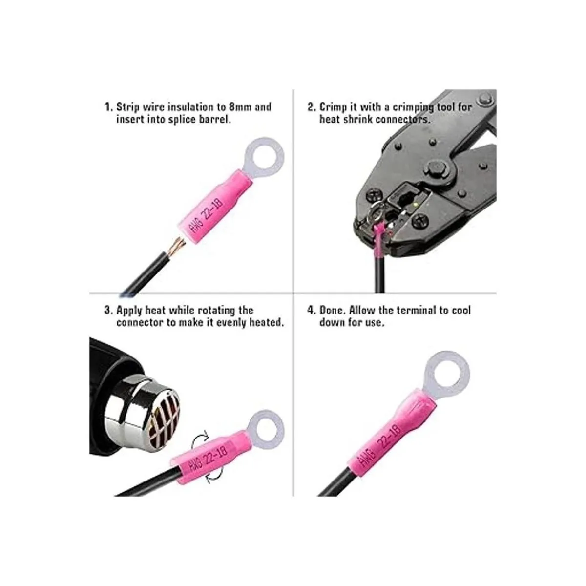 ADHESIVE TUBING : 3:1 heat shrink ratio and adhesive lined tube of these electrical ring connectors will leave you in peace. Heat activated adhesive seals the wire ends from the elements.